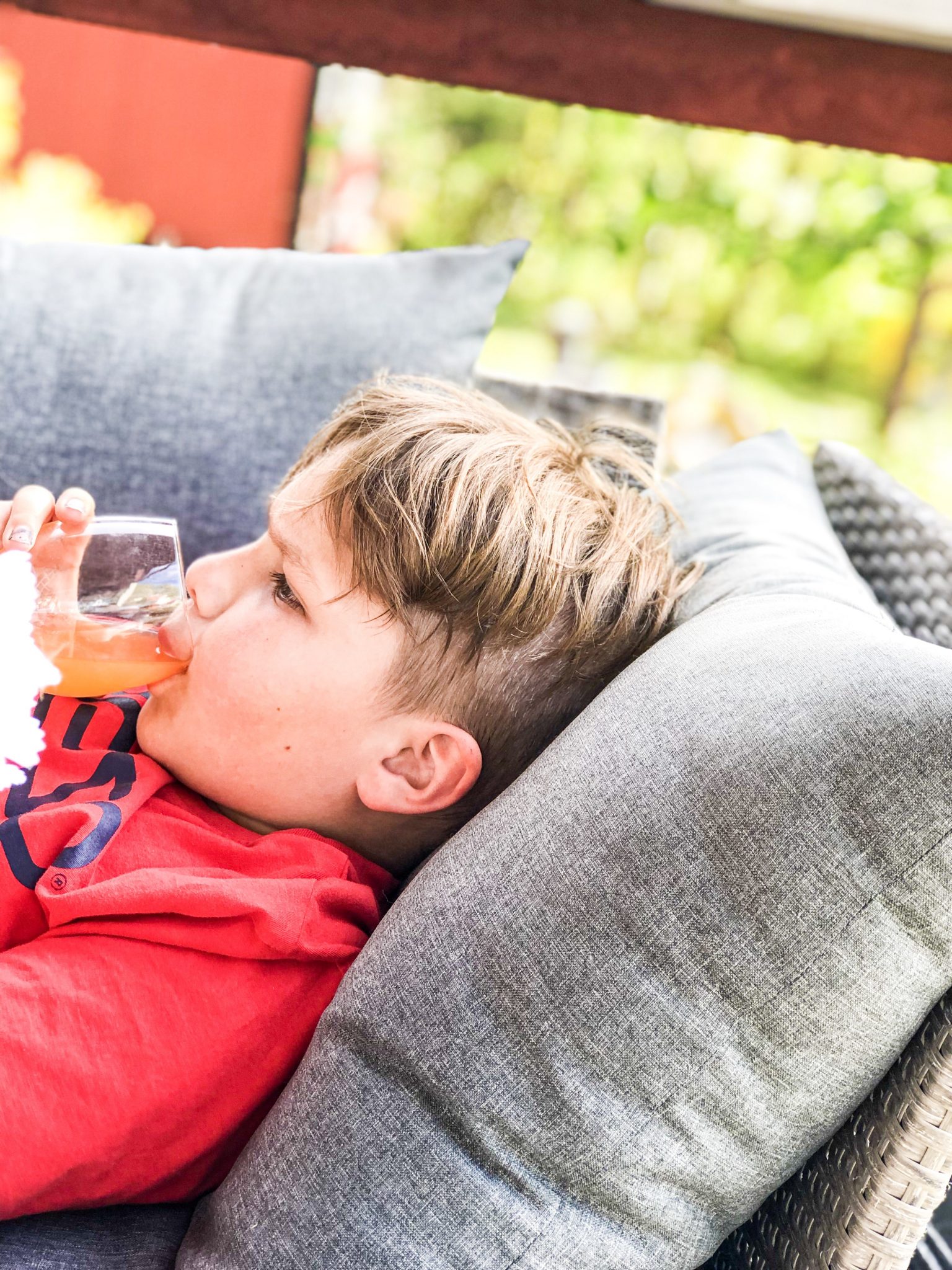 Han den här härligheten kom och låg i soffan med oss efter han hoppat sig svettig i studsmattan.
