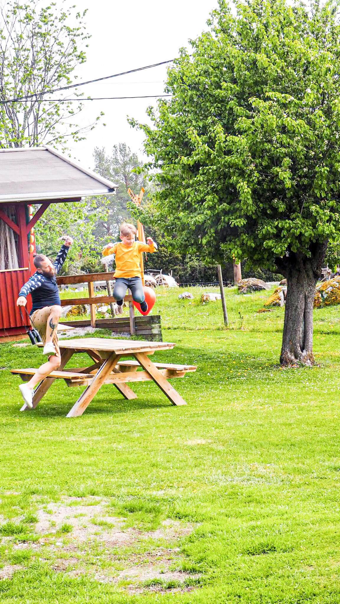 Balansgång och lite parkour. Pappan ville också vara med.