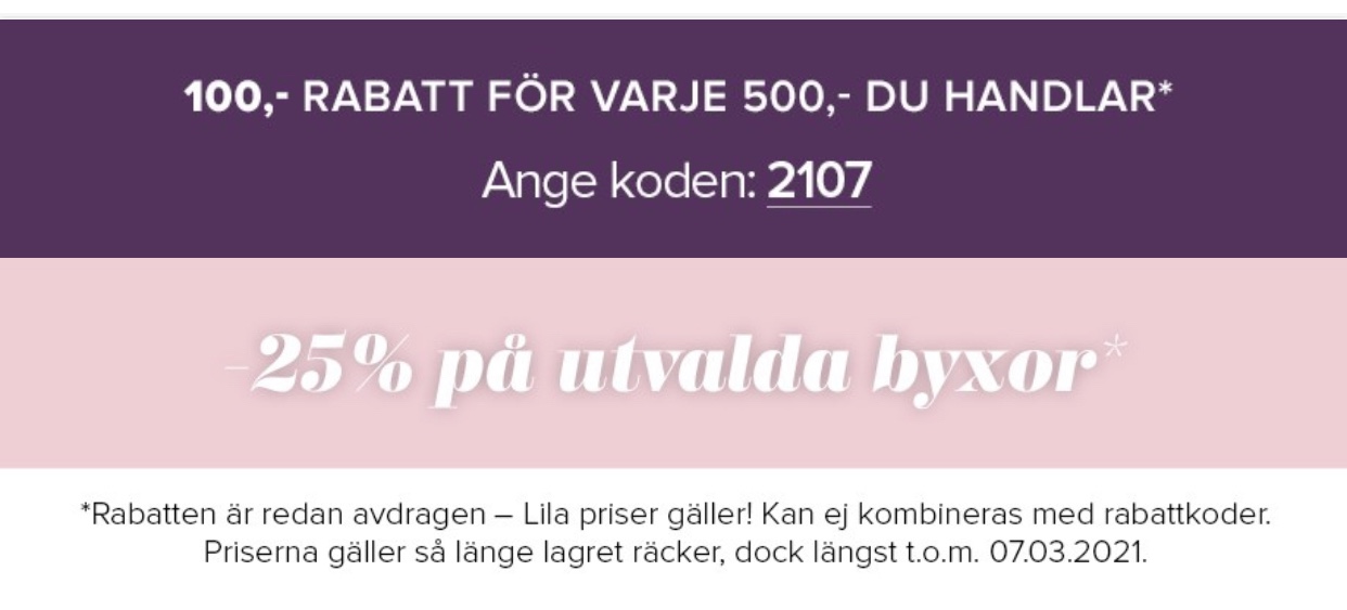 Kom ihåg att ange rabattkod 2107 om du handlar för över 500 kr. Då får du 100 kr rabatt. Gäller på Cellbes eget sortiment och hemsortimentet.