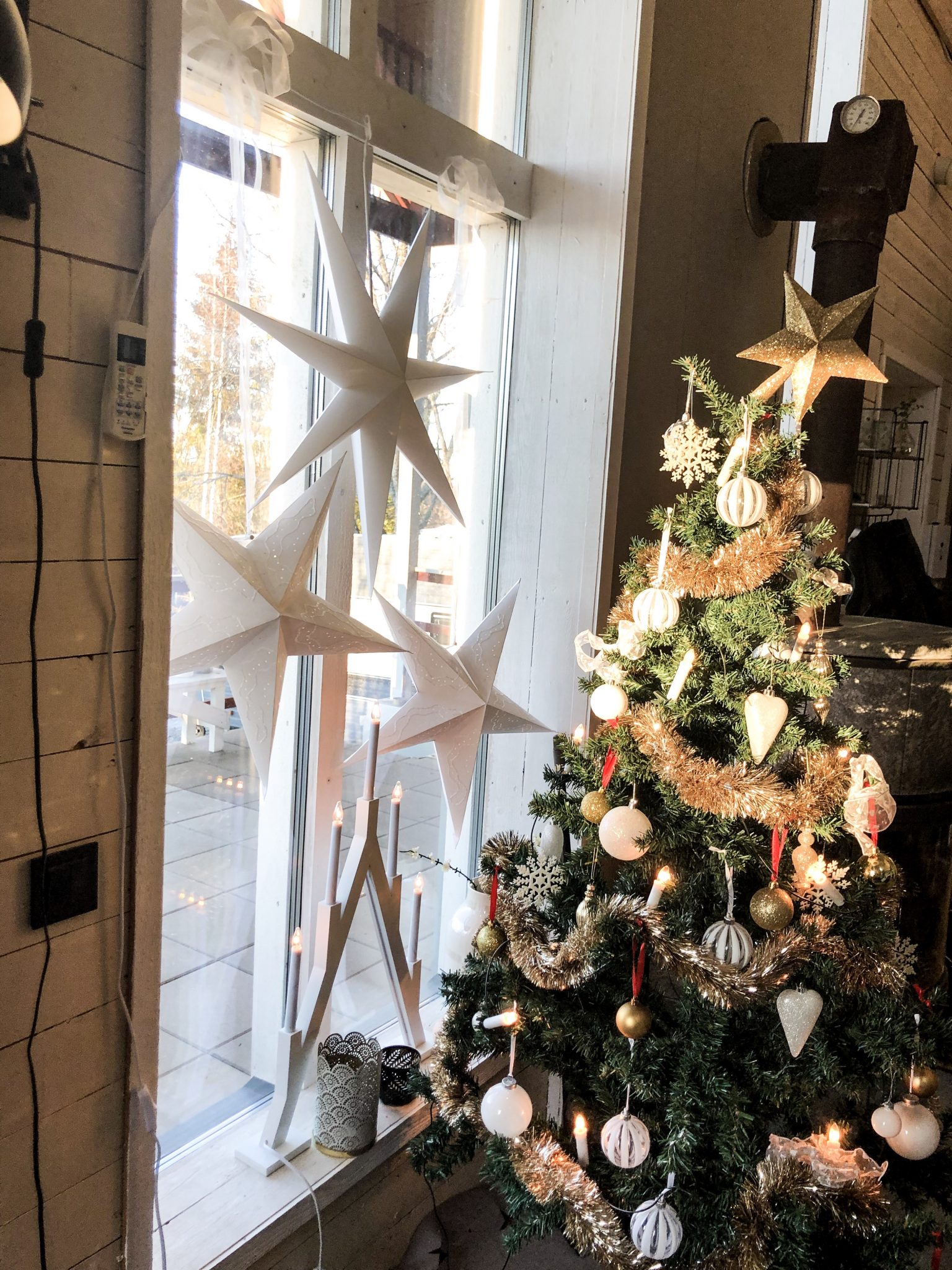 Granen glittrade också fint där i solen. Dock så verkar stjärnan börjat ge upp…. man har ju inte direkt pillat så mycket med julgranen efter jul. Nu står det mesta pyntet och jag struntar i det mer eller mindre. Börjar det vankas krispiga tulpaner tro?