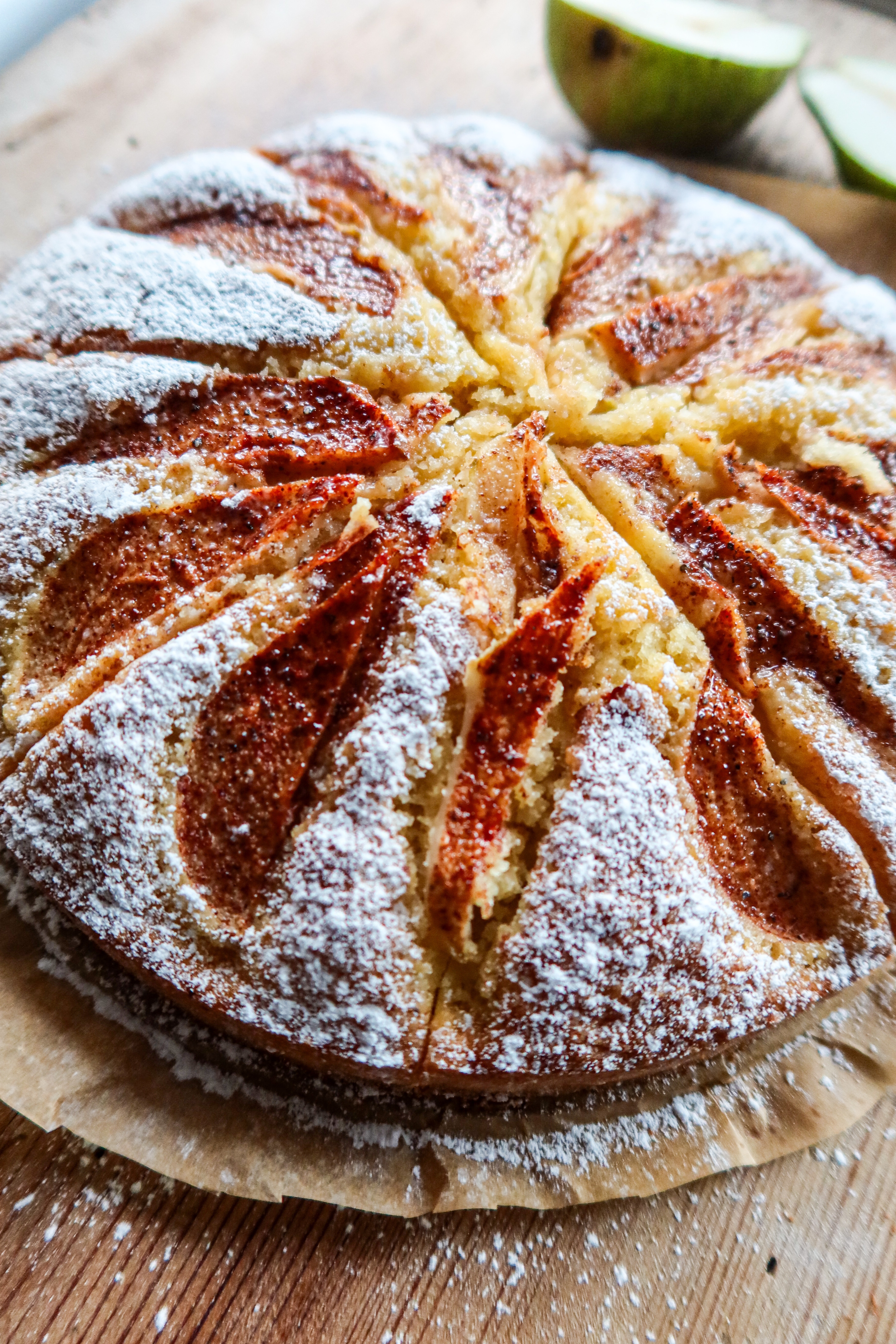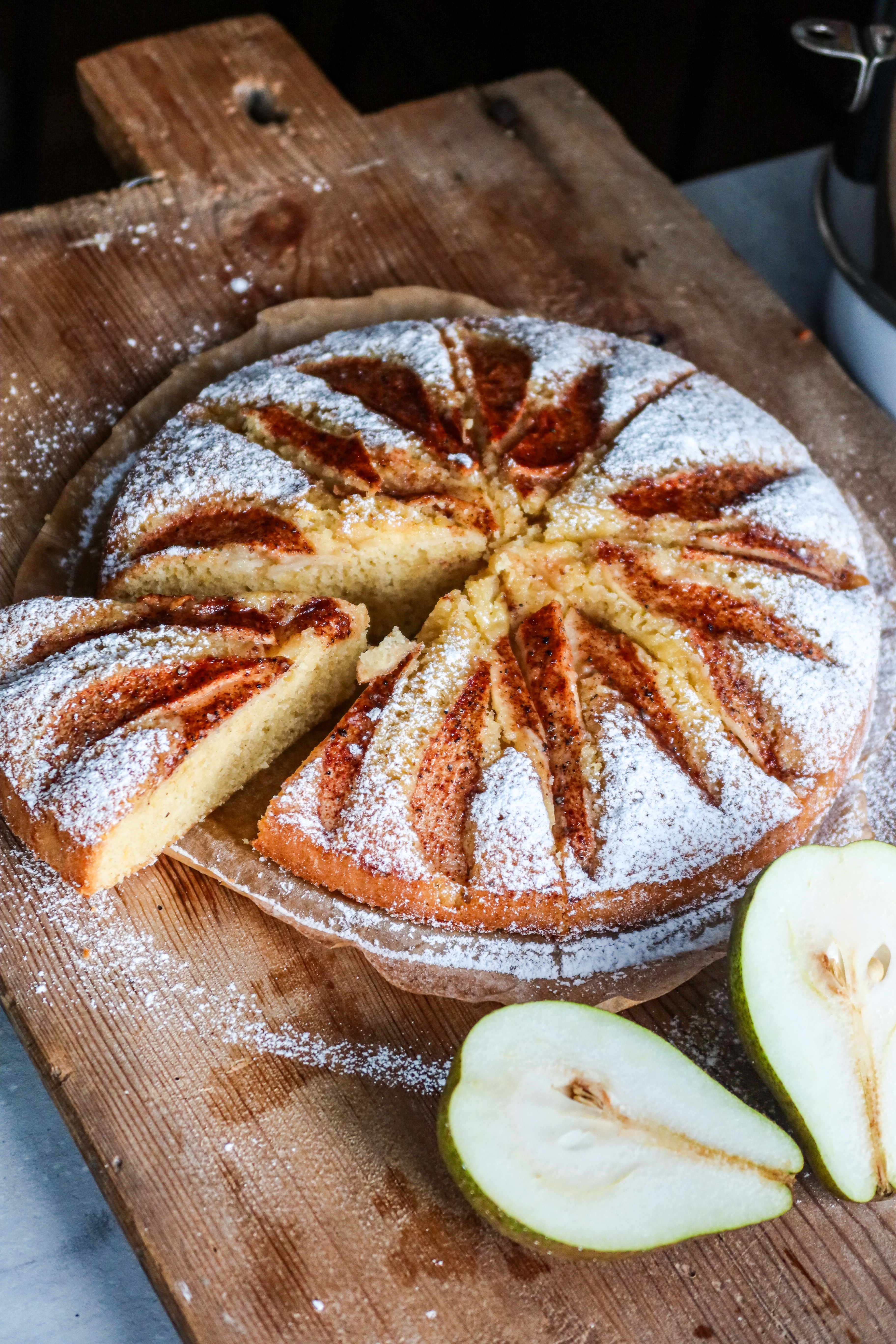 Varför har jag inte ägnat mitt liv åt att baka päronkakor hela dagarna? 😂 Nej men hallå i gatan vad smarrigt det skulle vara med just denna himmelska päronkaka. Lite som att jag fr.o.m nu måste baka det varje vecka. Mamma och pappas päronträd där hemma har verkligen varit överfullt av päron, så i veckan var jag och plockade en hel påse. Nu blir det päron i allt hemma ett tag. Denna päronkaka är busenkel att baka, det går i ett nafs för det första. Du behöver inte vispa ägg och socker i en halv evighet utan bara blanda ihop, skala lite päron och så dekorera och på med den magiska kanel/råsocker/vaniljsocker/kardemumma blandningen. Jag säger bara heja heja så gott!