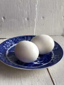 Har kokat mig 2 ägg här som jag lagt på en lite finare tallrik för att försöka pigga upp mig själv.