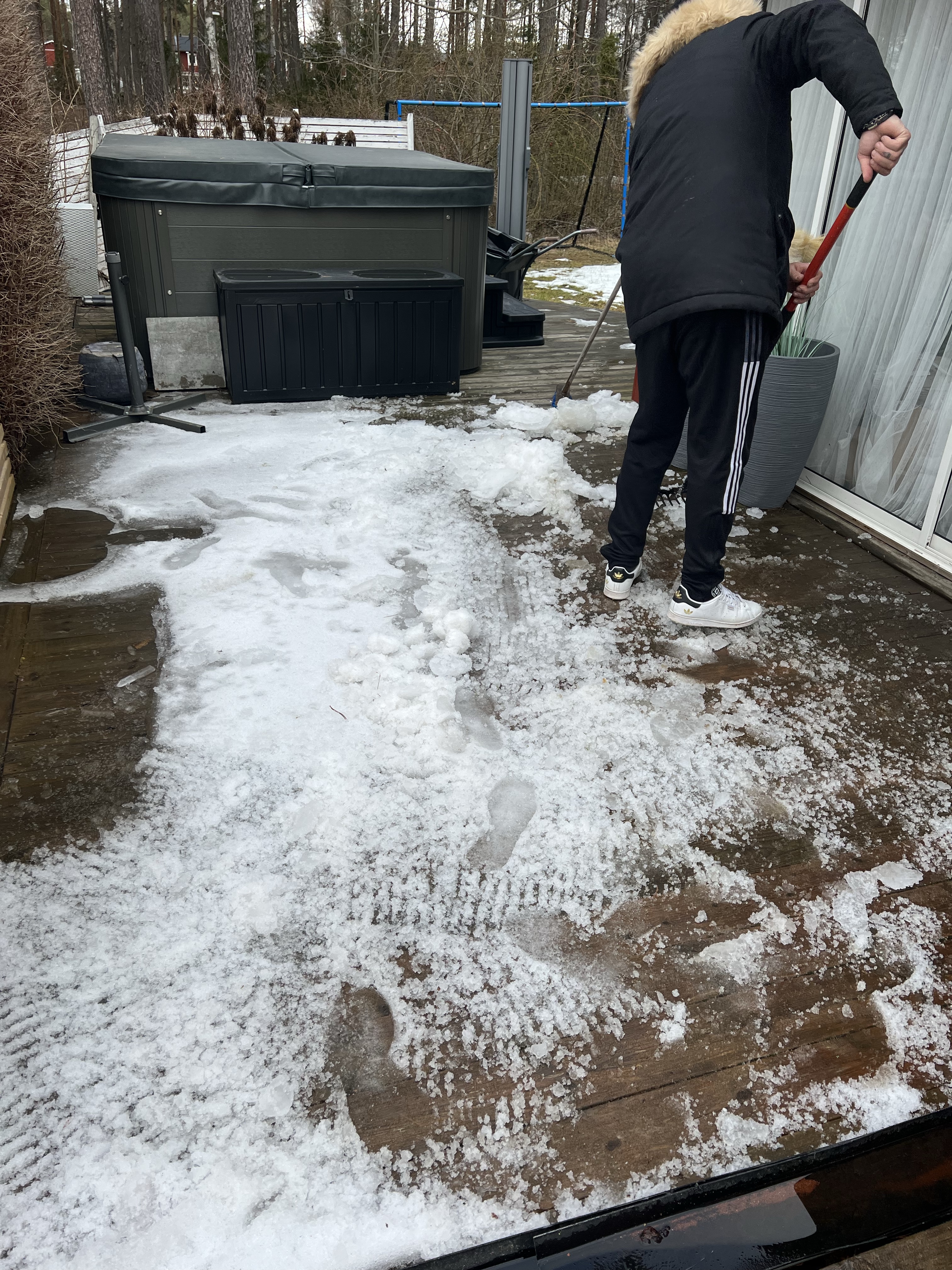 Tony var så duktig som skrapade bort ALL snö från alla altaner. Man måste hjälpa våren på traven ibland. Vi plockade fram alla möbler som stått under presenningen sen vi åkte till Marbella.