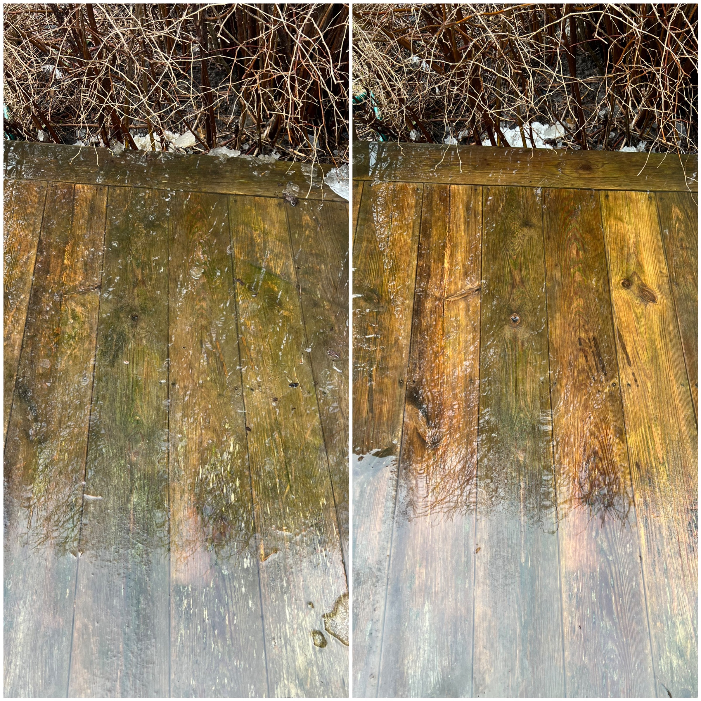 Testade att göra rent altanen på en fläck, hur sugen blev man på att fortsätta?! Ska vänta tills det torkat upp lite sen jäklar ska det rengöras överallt och också oljas in. Kommer bli sååå fint!