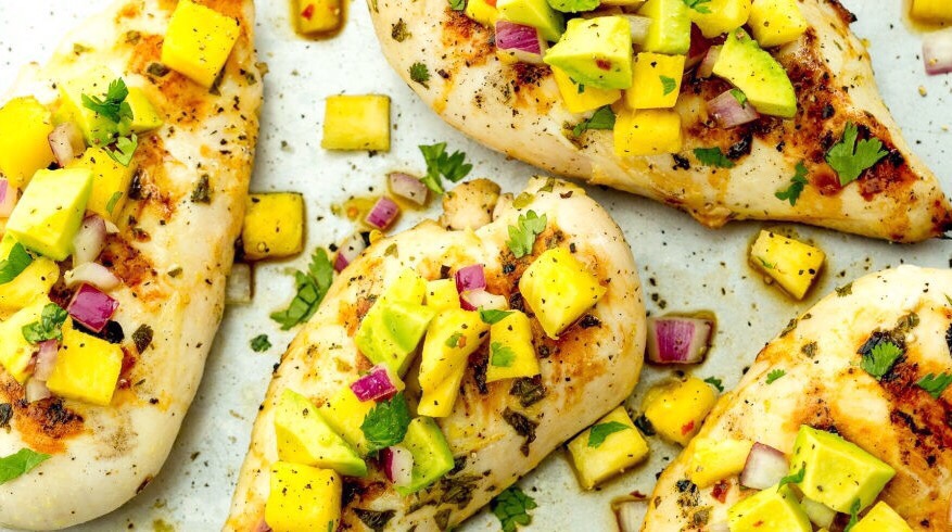 4) I en annan skål blandar du ananas, avocado, rödlök, koriander och saften av 1 lime. Häll salsan över kycklingfiléerna. Servera med ris.
