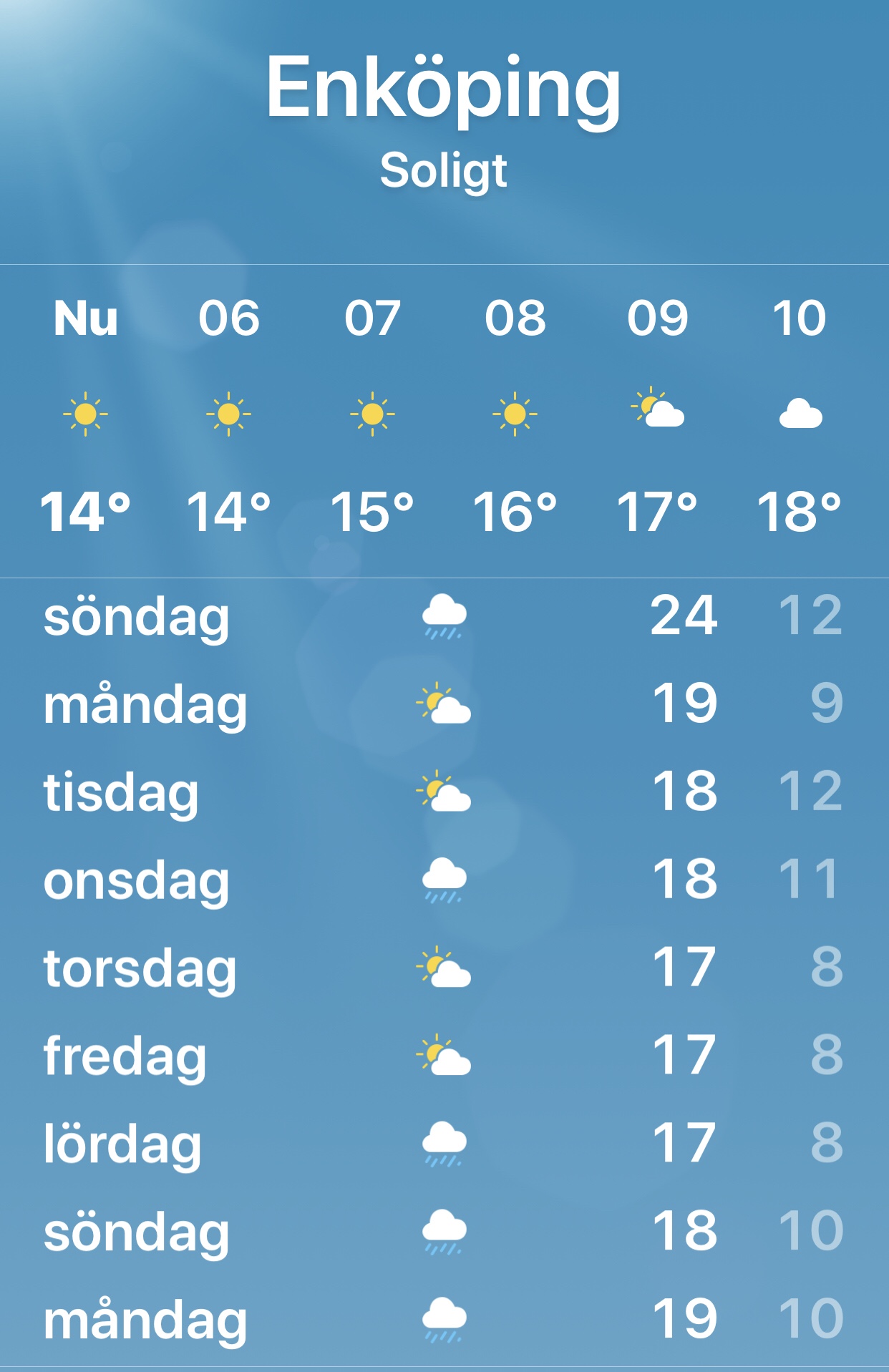 Dock så kommer vi inte behöva skrapa någon ruta den närmsta veckan, däremot kommer vi nog få användning för regnjackorna.