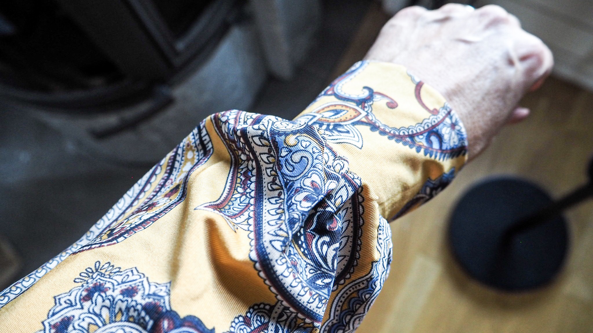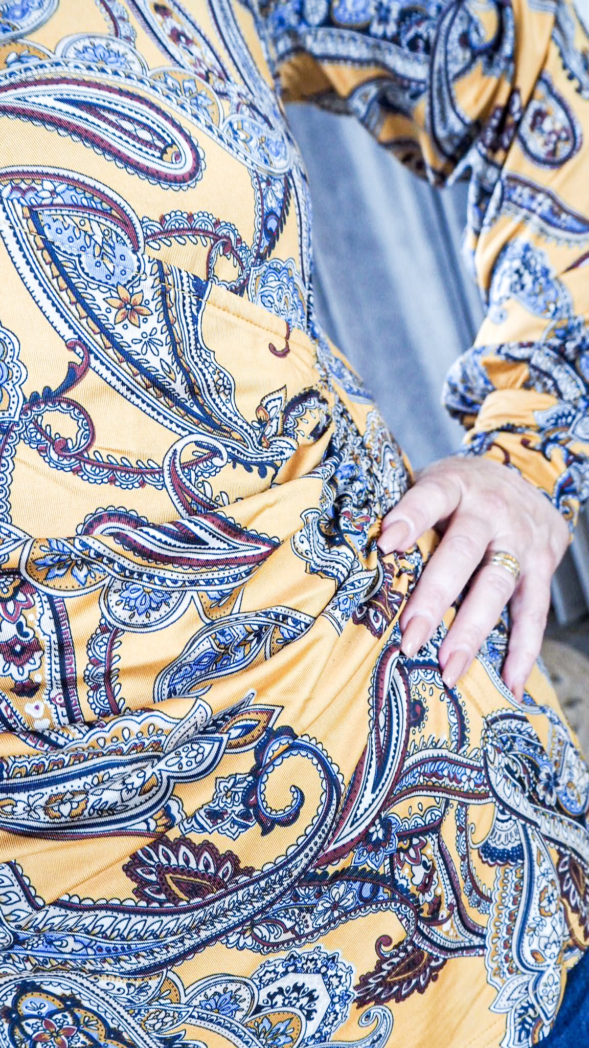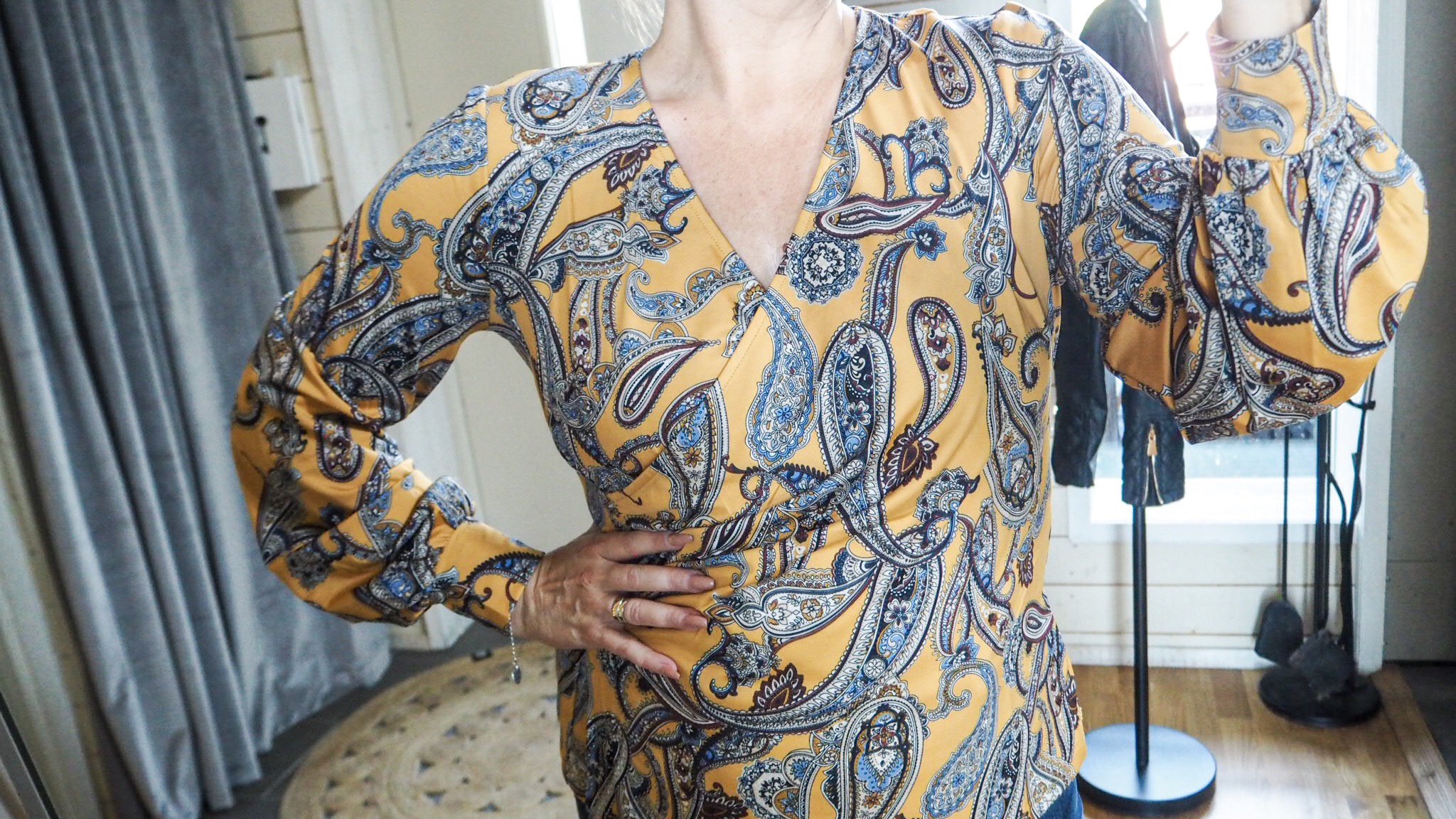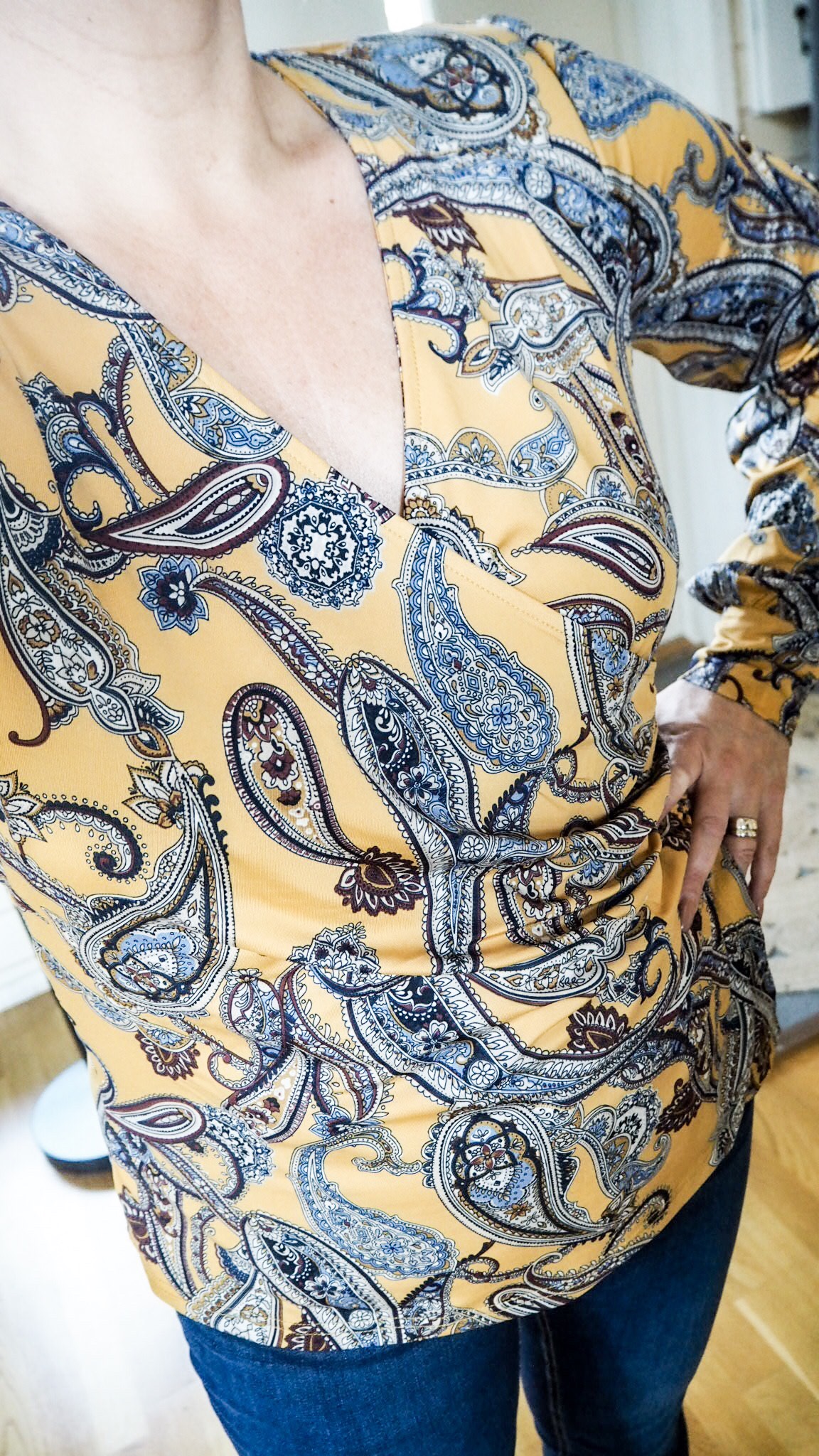 Paisley heter det va? Toppen hittar du klänning<< i samma mönster. Den såg superhärlig ut också! Älskar att den är draperad över magen, att den är omlott och ärmarna ska vi inte prata om!