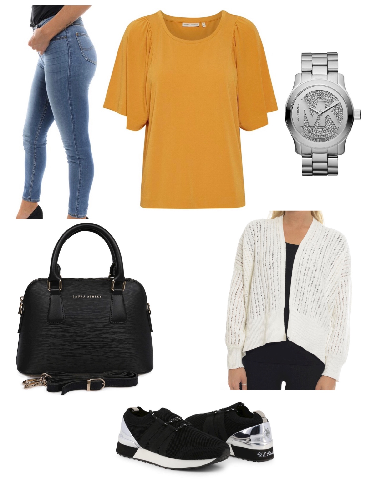 Jeans (40% rabatt) // Topp (43% rabatt) // Kofta (50% rabatt) // Väska (69% rabatt) // Sneakers (35% rabatt) // Klocka (44% rabatt)