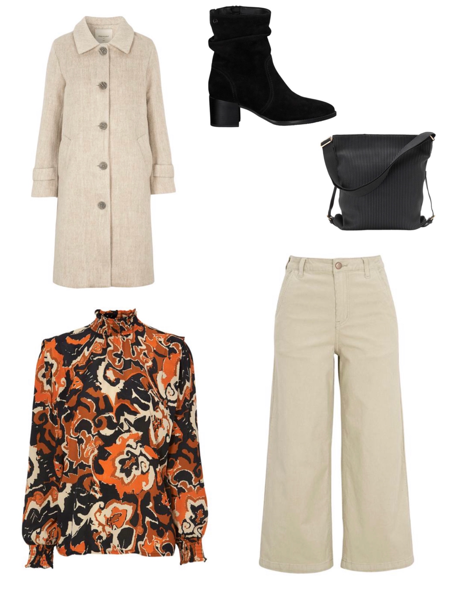 Topp HÄR // Culottebyxa HÄR // Stövlett HÄR // Kappa HÄR // Väska HÄR