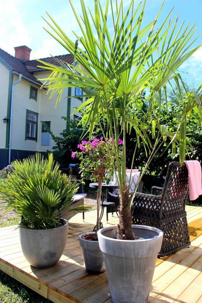 Eeeeh, what the fuck? Vem dödade min palm? Förmodligen jag själv…vi vattnade kanske två ggr på hela vintern. Inte ens palm fixar det liksom. Bouganvillen (men de små rosa blommorna på) stendog också. Den stora bumliga palmen klarade sig med när och näppe. Håller på och ger den massa kärlek nu så den ska bli glad igen.