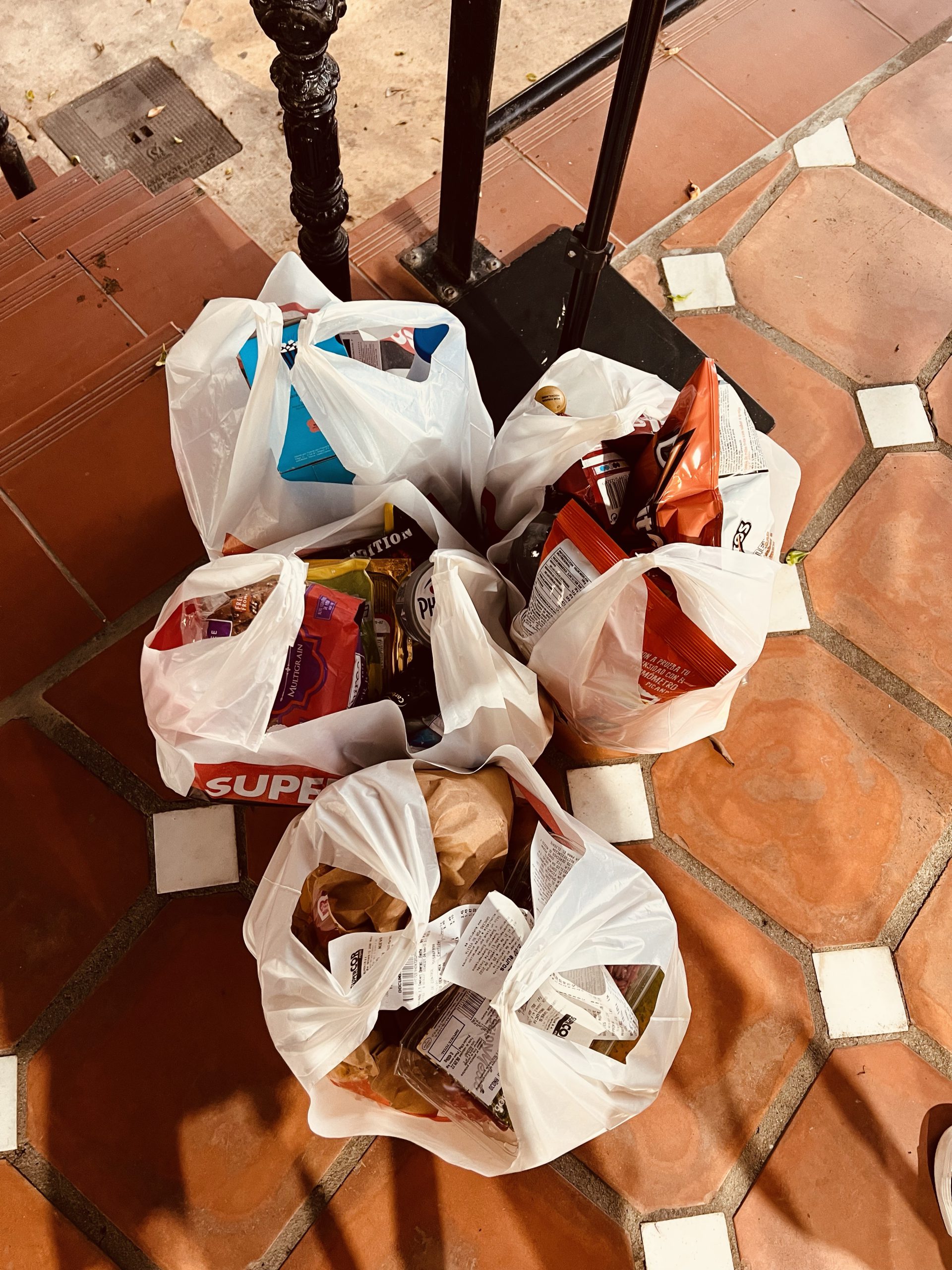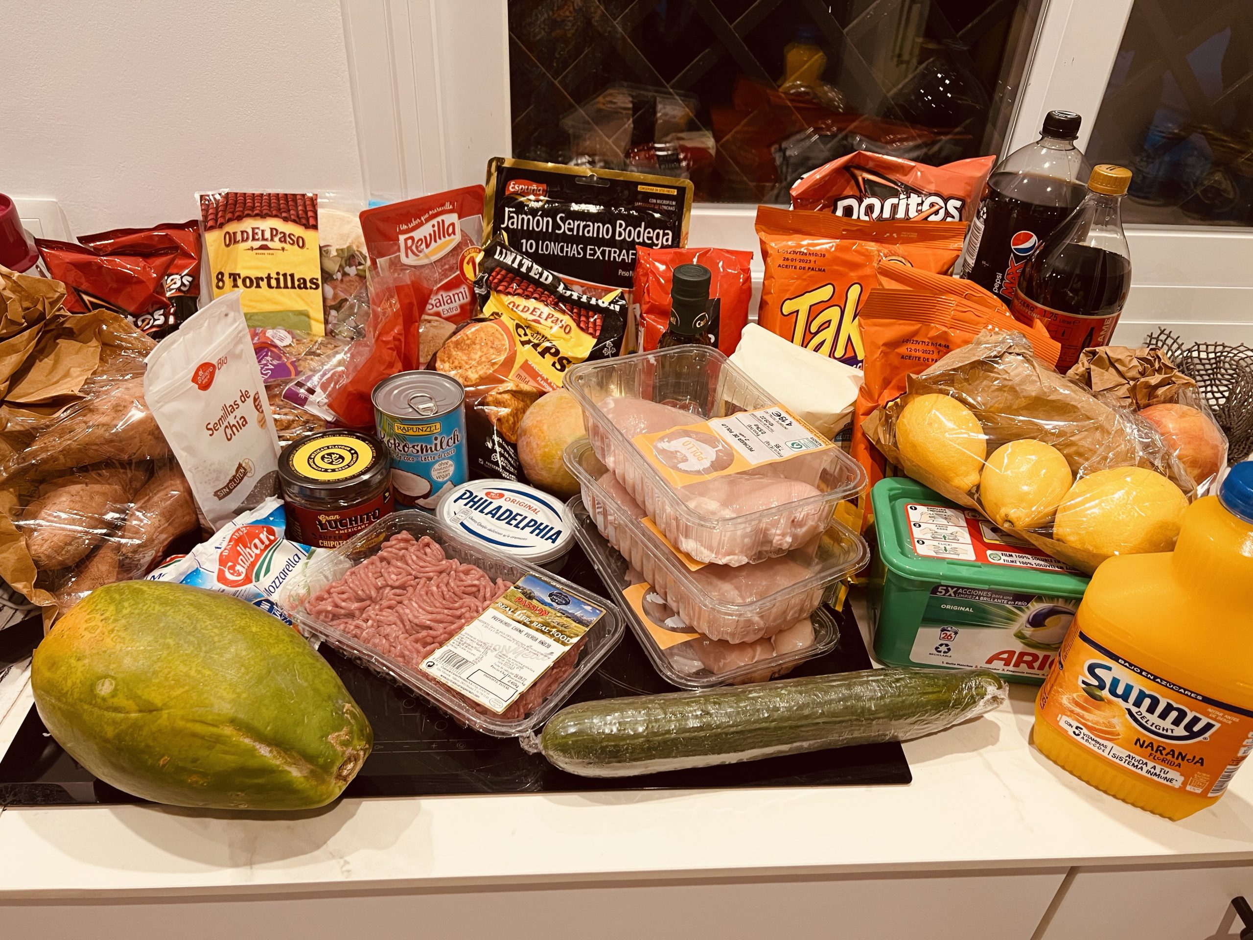 Efteråt tog vi en promenad till Supermarket. Väldigt olika vad de har för utbud, just detta var riktigt bra. Kanske lite dyrt då detta nog är ett ”dyr-ICA”. Åker du lite utanför så hittar man stormarknader och då är priset annat. Dessa 4 kassar med mat gick på 1300 kr, då köpte vi dyrt jäkla tvättmedel och sköljmedel också. Sen mat för flera dagar.