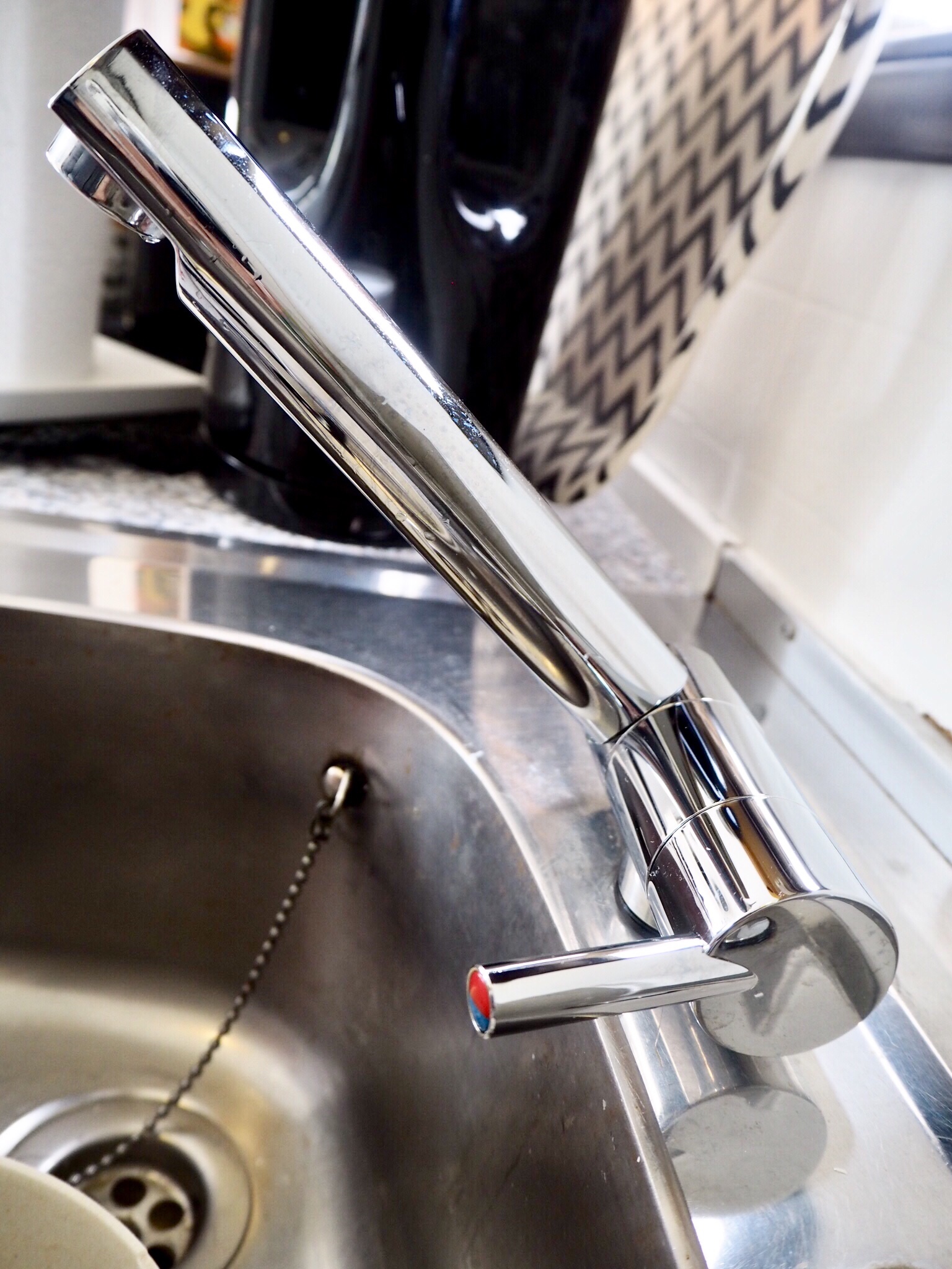 Köket är klart förutom att jag ska köpa en dekorplast som ser ut som kakel och sätta upp. Jag har satt dekorplast på bänkarna redan. Ska beställa en som har sån Marrakeshkakel-mönster, behöver bara mäta lite först. Vi har bytt ut kranen – det var bl a den som Tony svor så hiskeligt åt.