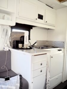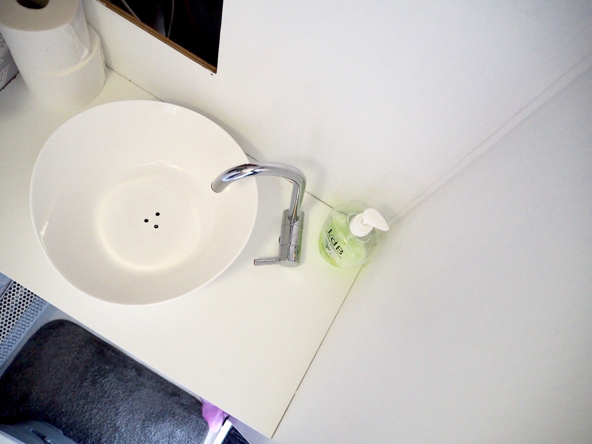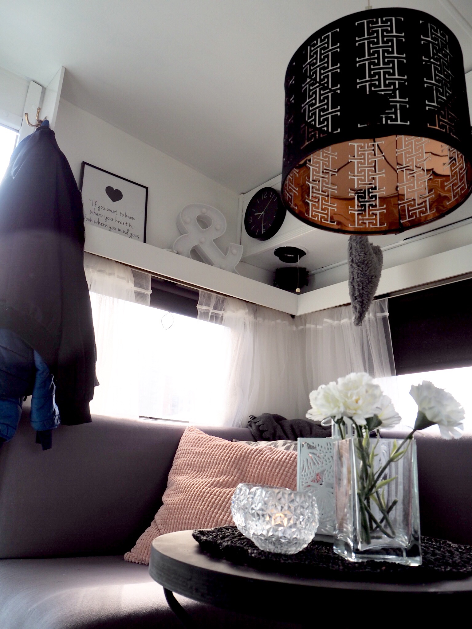 Vi har en spegel på väggen utanför toan. Jag har klaustrofobi men absolut inte i husvagnen. Det är riktigt mysigt!