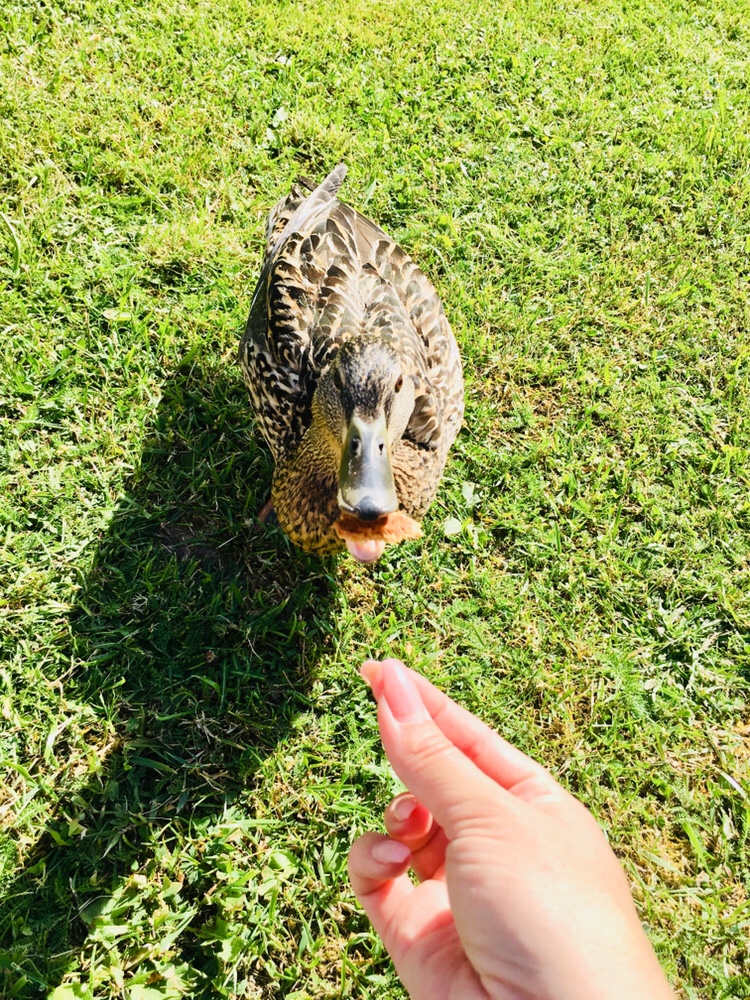 Ja men vet ni vad som hände idag då? Jo en sån här sötis till and dök upp. Hon var inte alla rädd. Åt från min hand och allt. Milo var helt fascinerad. Mina naglar gjorde nog att det inte gjorde ont när hon slet åt sig brödet.