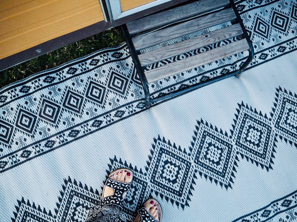 Det här är såå sommar för mig. Tofflor, mattan utanför husvagnen och så den karakteristiska husvagnstrappan.