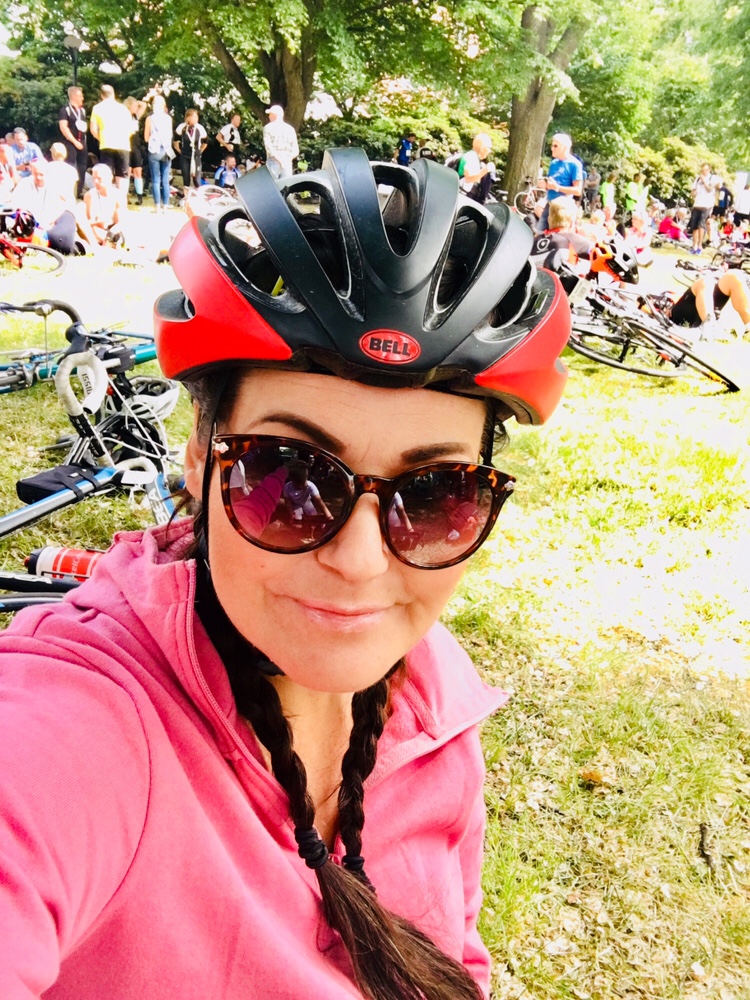 Här stod vi och väntade tålmodigt att han skulle dyka upp. Så sjukt mycket cyklister. Sen är de så sjukt duktiga! Hatten av. 30 mil, starta klockan 1 på natten och sen cykla i 127 timmar liksom.