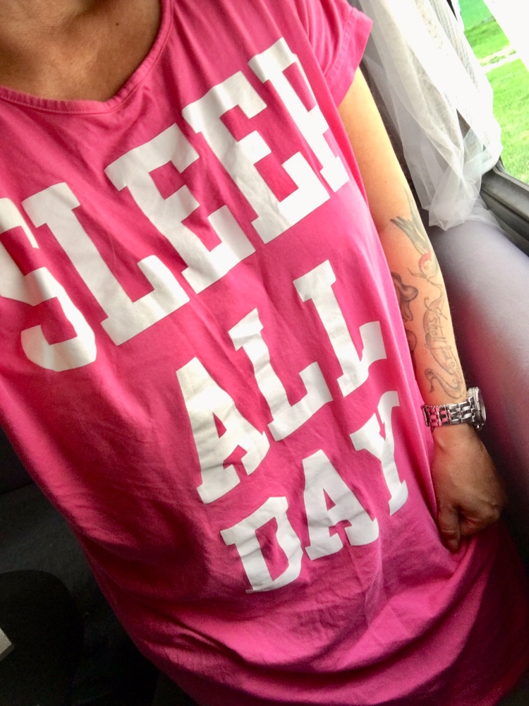 Det rosa nattlinnet ”sleep all day” har jag också. Köpte det på Ica Maxi i Enköping faktiskt, förra sommaren. Kanske du också gjort det?