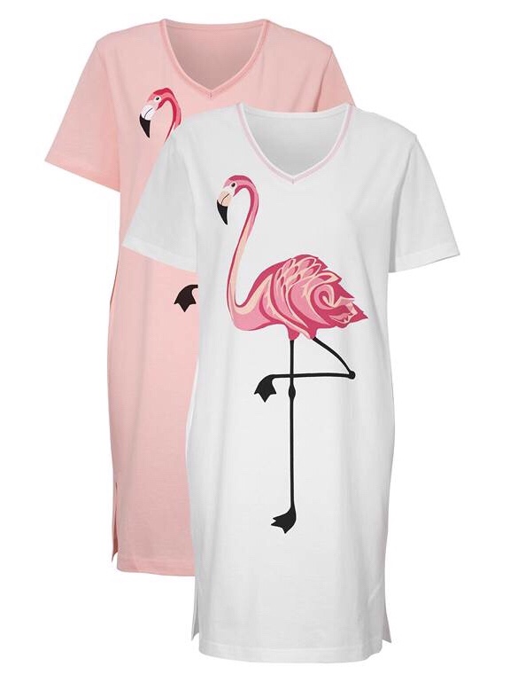 Någonstans har vi hittat en kompromiss. Gått halva vägen var liksom. Panchisnattlinnena får liksom vänta…. Men som dessa nattlinnen med flamingos är en bra kompromiss. Haha!