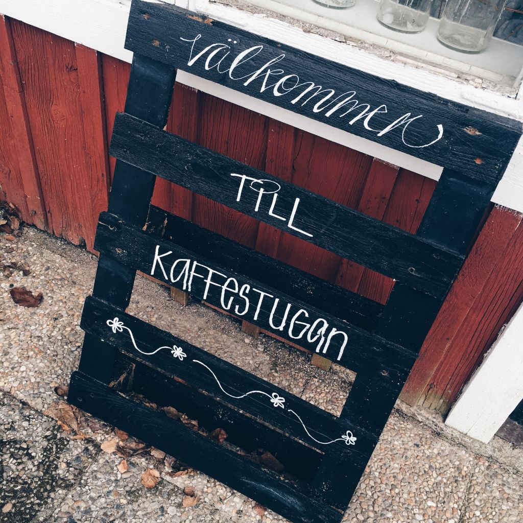 Jag var också till kaffestugan idag. Målade lite, textade lite och ställde i ordning hyllorna som vi flyttat när vi skulle måla golvet. Nu får jag frågor här på bloggen och på mejlen av folk som vill veta hur det funkar med den här färgen? Många vill måla ett fult tvättstugegolv, någon en hall och någon en toa. Jag kan skriva ett inlägg om det sen så kan jag berätta om min erfarenhet med att måla golven.