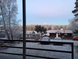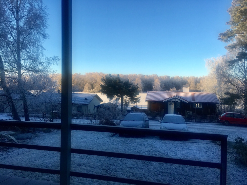 Kikade ut lite tidigare i morse och då såg det ut såhär. Det såg ut att kunna bli vackert….