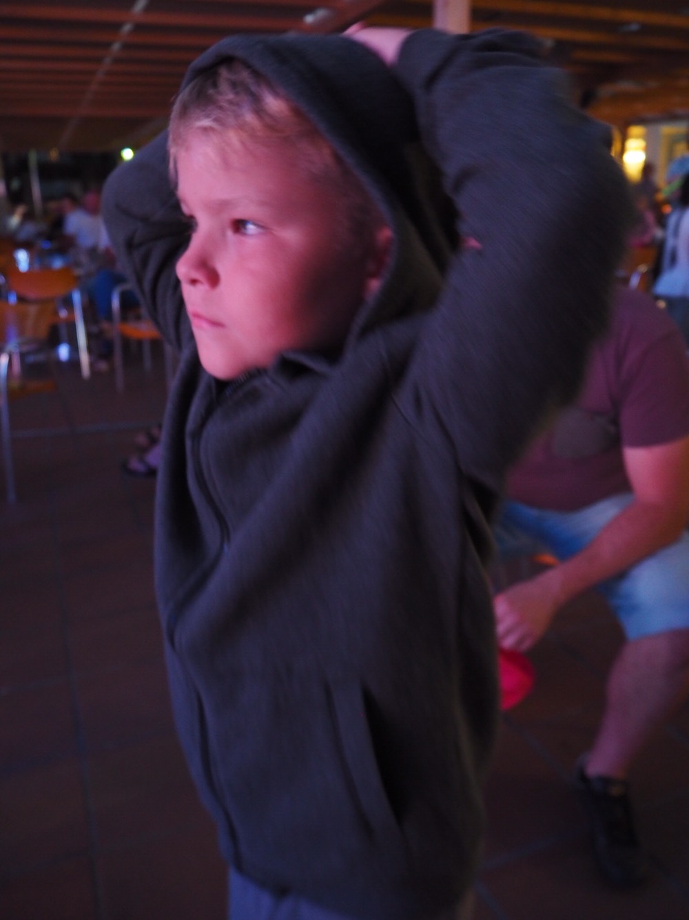 Det var barnfest borta vid scenen så Milo hann att vara med och dansa lite. De som jobbar med underhållningen här är unga människor, såå duktiga och engagerade även om jag gissar att de varit här en väldigt lång säsong redan.
