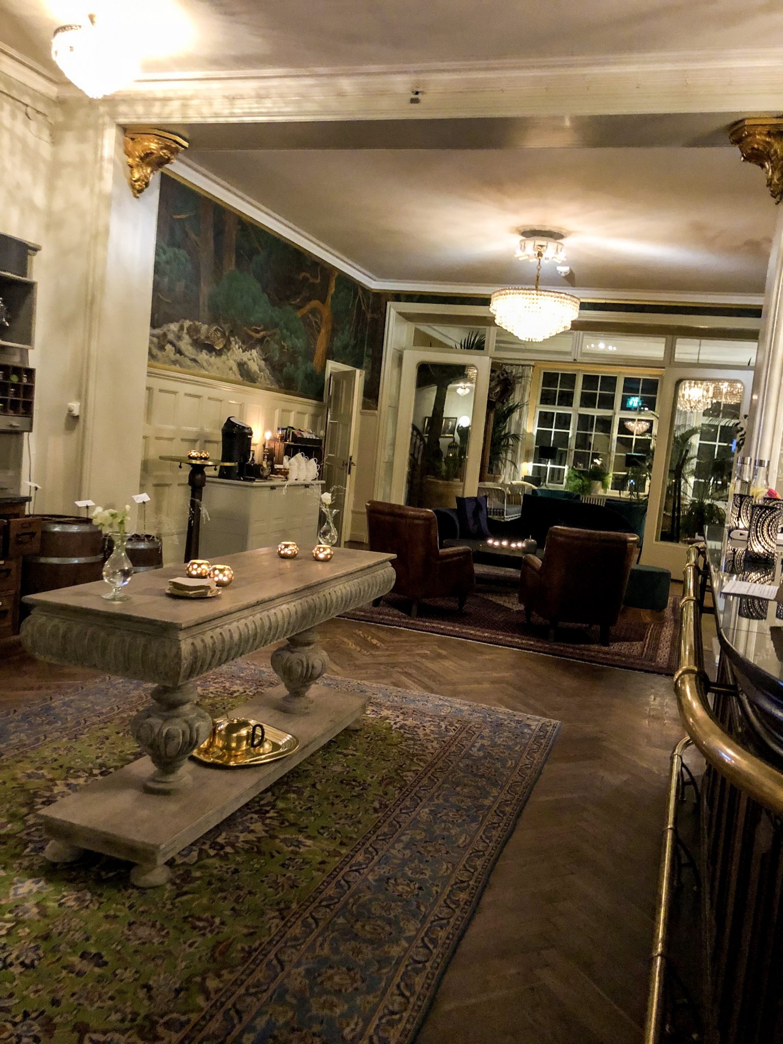 Det var så fridfullt och mysigt på slottet när vi kom dit. Lite sorl från middagsrummet och så alla tända ljus och mysiga lampor.