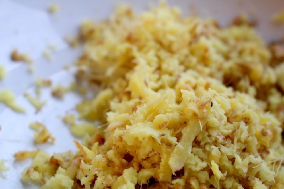 1) Koka 1 liter vatten. Riv ingefäran grovt, låt skalet sitta på. Låt det kokta vattnet svalna till runt 60 grader, detta för att man inte ska förstöra allt det nyttiga och fantastiska i ingefäran och de andra ingredienserna.