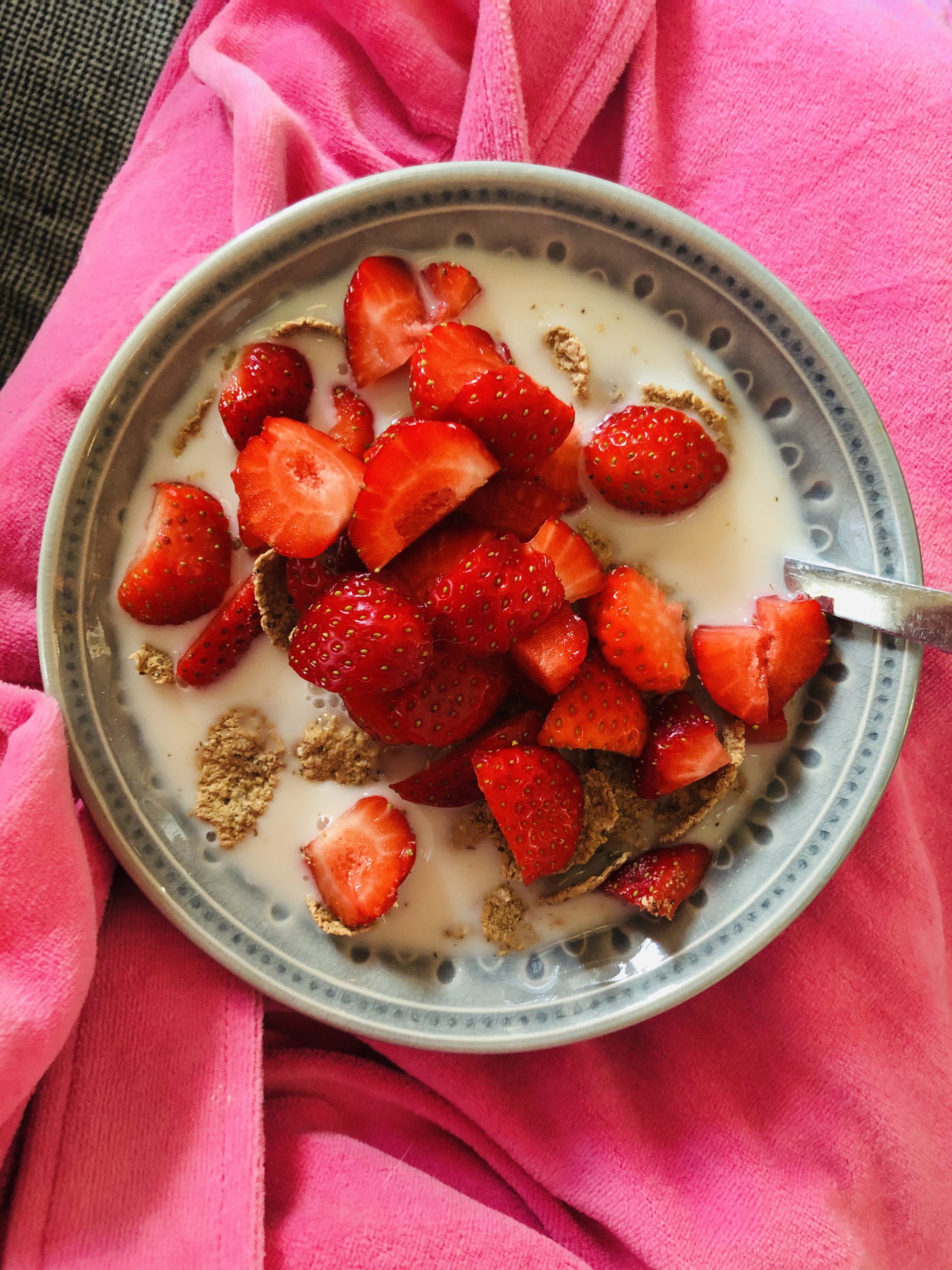 Detta blev middagen idag! 😅 Ja ibland får man fasen bara skita i allt vad med middagstider och riktig mat heter. Idag blev det en tallrik naturell havreyoghurt med lite havremjölk, boveteflingor och jordgubbar. Svingott!