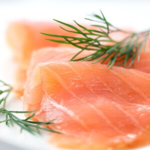 1) Skär laxen i mindre bitar, tänk dig storleksmässigt som sillbitar. Lägg laxen i en påse tillsammans med salt en timma innan.
