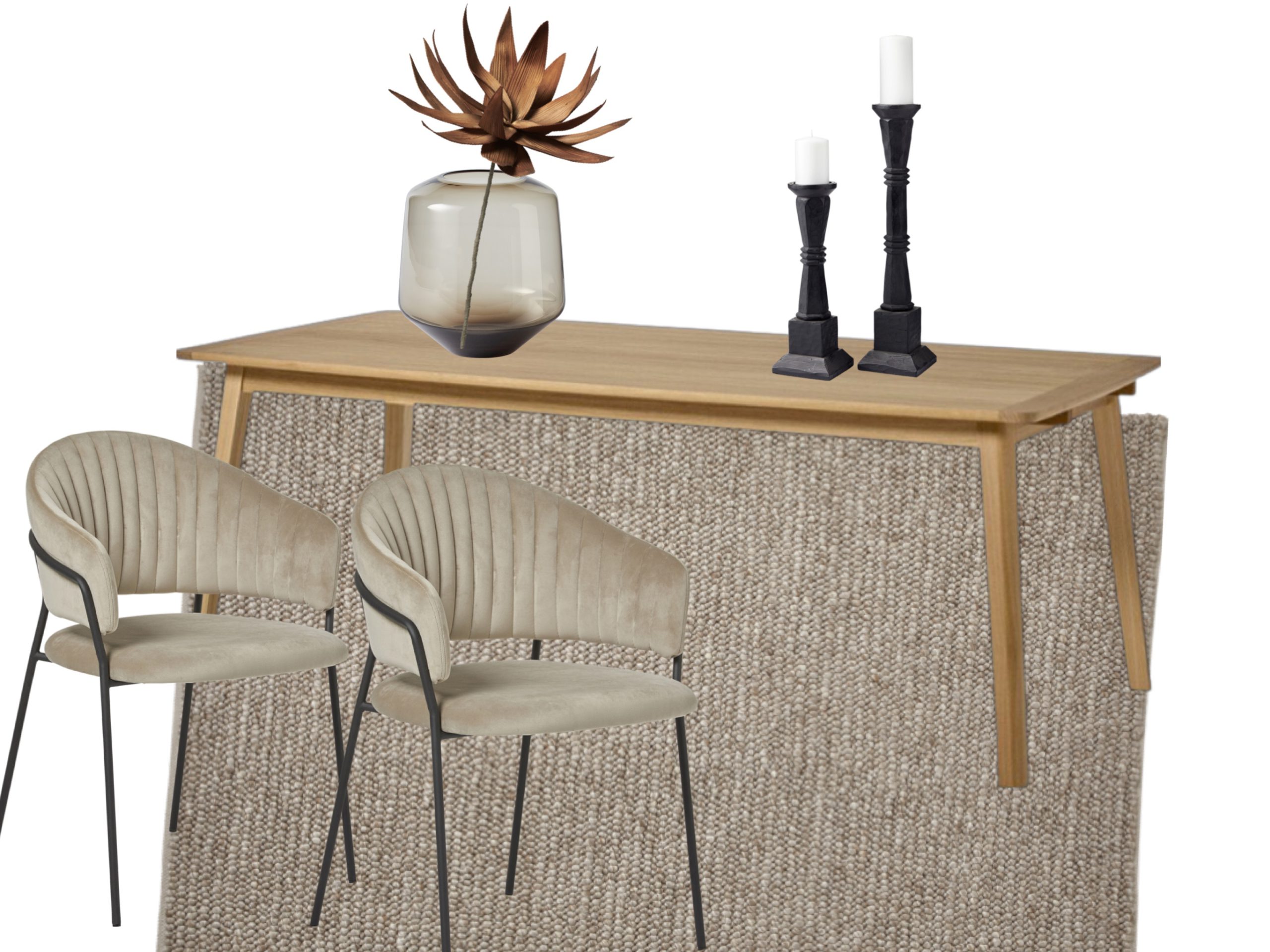 Matbord // Stol // Vas // Ljusstakar // Konstväxt // Matta