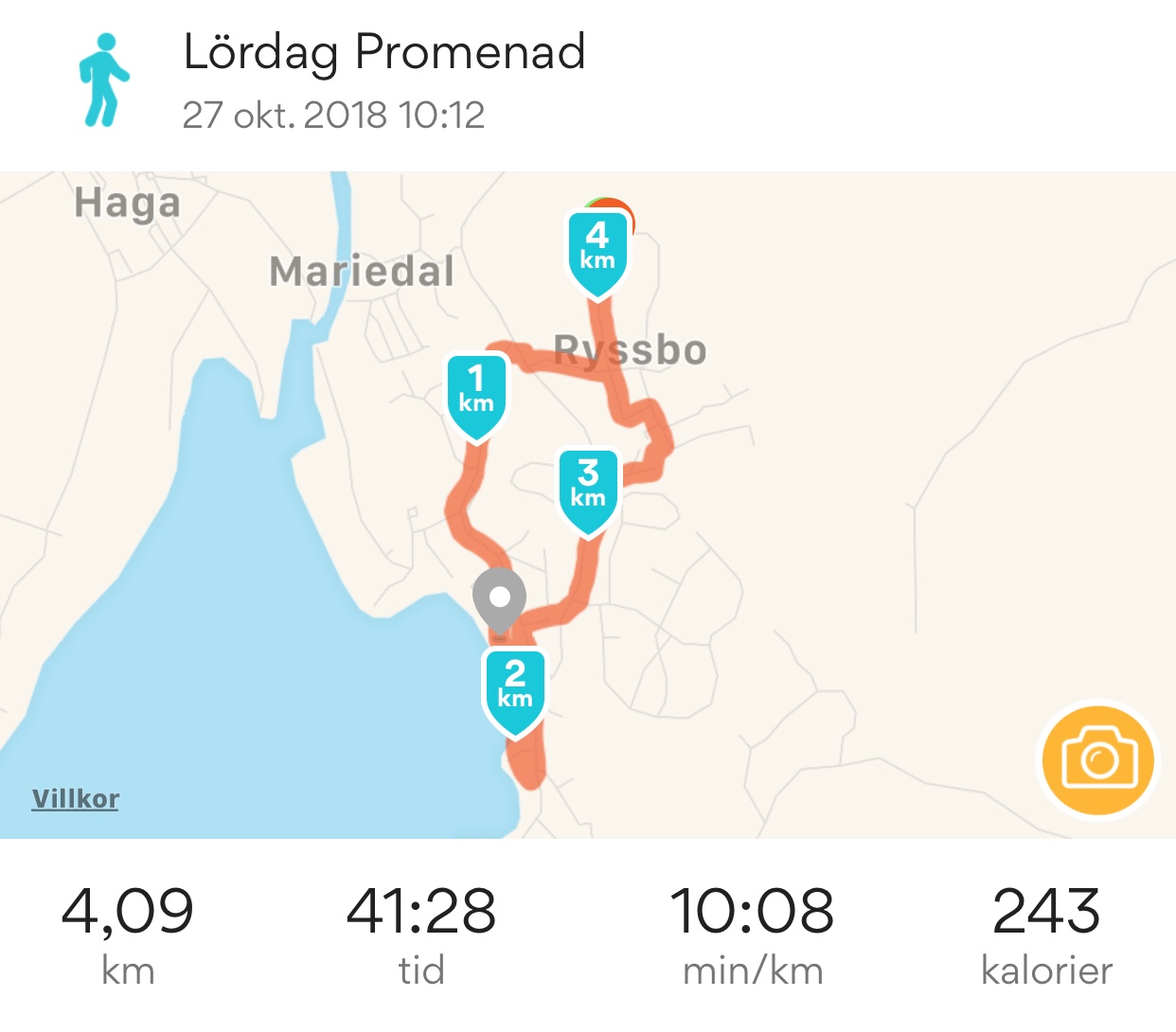 Trots is, regn och blåst har hon likt barnen från frostmofjällen kämpat på. Min ”runda ” ligger på strax över 5 km. Hahaha…pinnar på av ini helvette.. spänner kroppen när jag går och svingar med armarna- fram och tillbaka och snett åt sidorna.. beroende på låt i lurarna- så åker det ibland till och med upp ett discofinger i luften… joråsåatt! Dansat här hemma så klart.( hur kan man låta bli undrar jag när det kommer lite schysta beats- men av hänsyn till levande väsen- idkar jag denna företeelse ” all by my self” Har faktsikt gjort lite armhävningar när jag kommit tillbaka från promenader och typ knäböj …