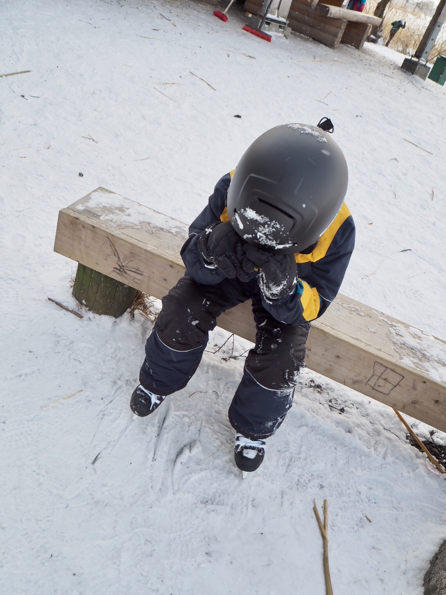 Såhär trött var han vår fis. Han dunkade på med skridskorna så han var röd som en tomat i fejjan. Kompis Anton och han fick hänga och de hade nog riktigt skoj. Men det är jobbigt med något man inte är så van vid. Milo var inte åkt skridskor på väldigt länge så han kommer nog ha lite träningsvärk imorgon.