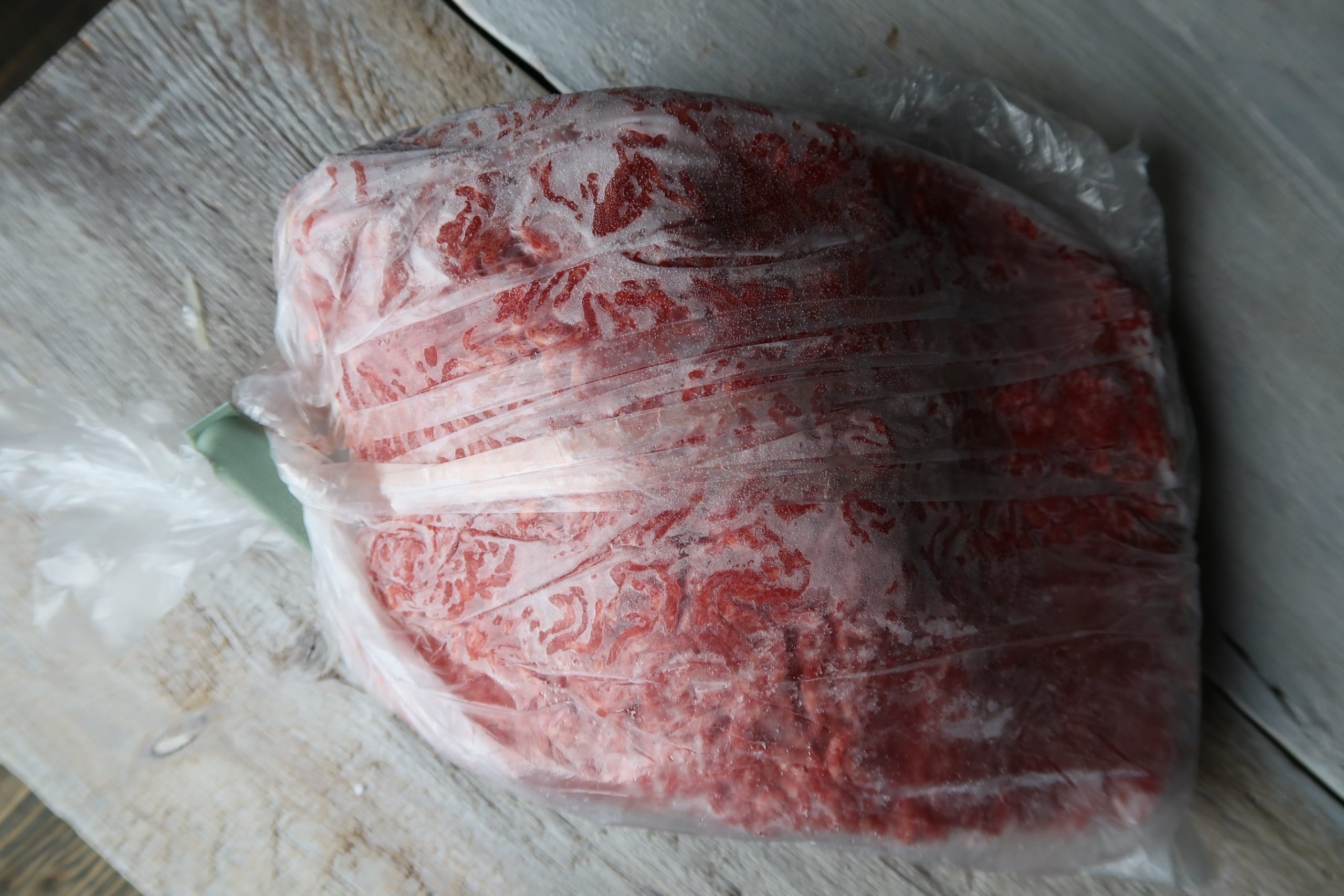 Här har ni den djupfrysta köttfärsen. Den väger ca 800 gr.
