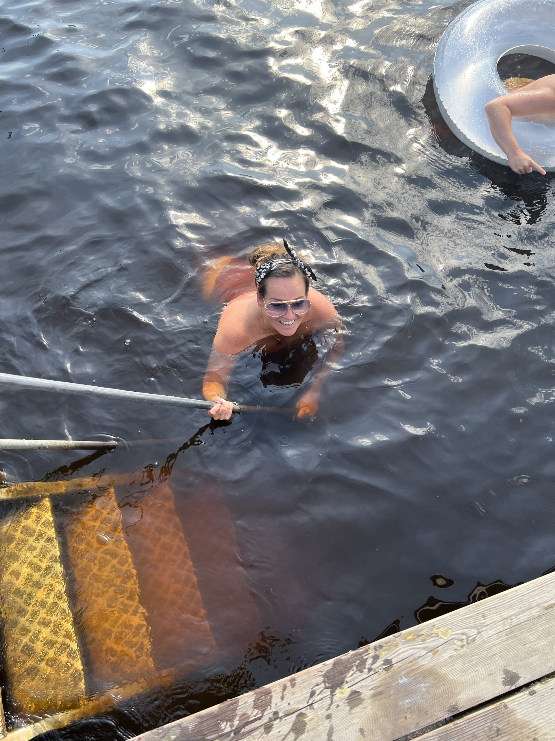 Apropå hopptorn, jag kan ju typ inte släppa ungarna med blicken. Jag har öga på Milo hela tiden. Alltid på spänn så allt går bra, att han landar bra i vattnet och att han kommer upp ur djupet. Igår satt jag och tittade ditåt hela dagen så idag har jag spänningshuvudvärk från nacken. 🙈