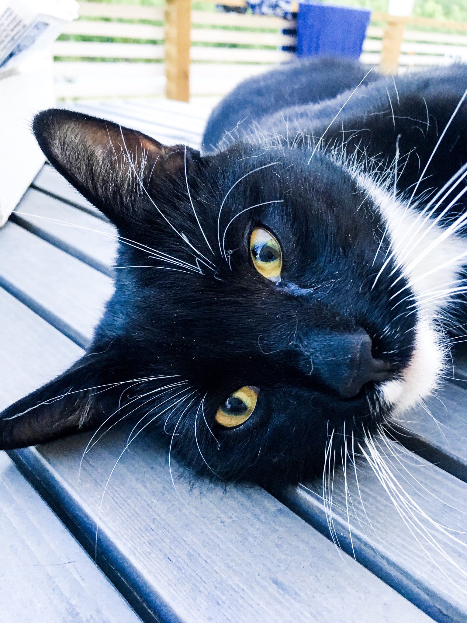 Den här vackra och jag blev kompisar. Han låg på bordet framför mig så jag fick klappa honom.