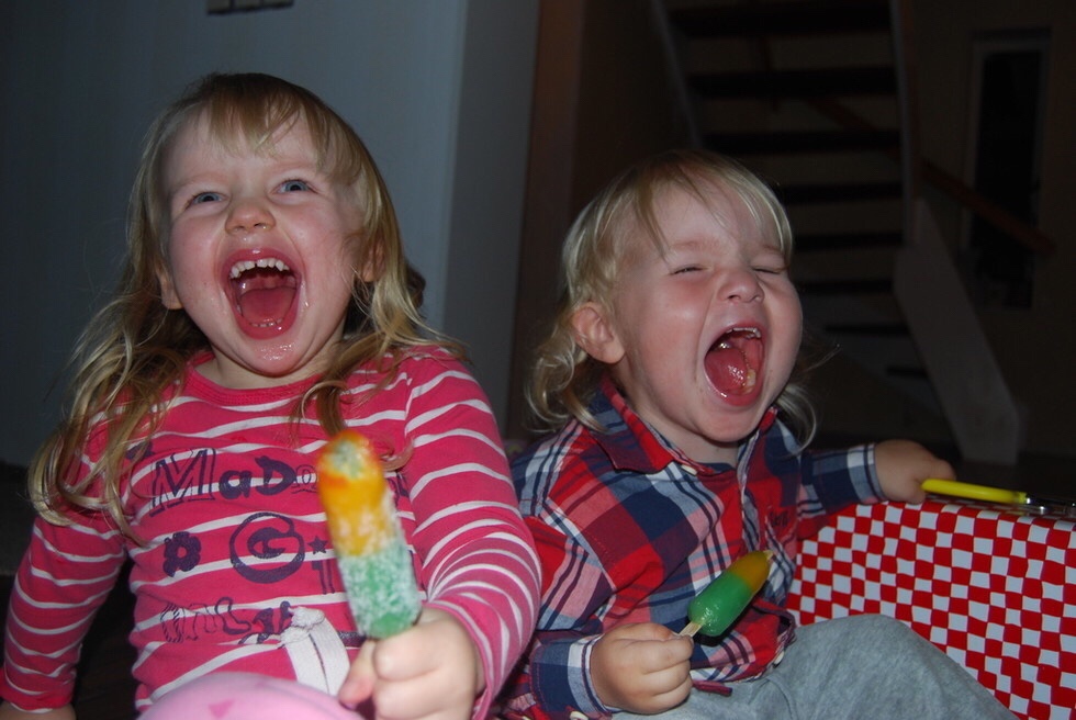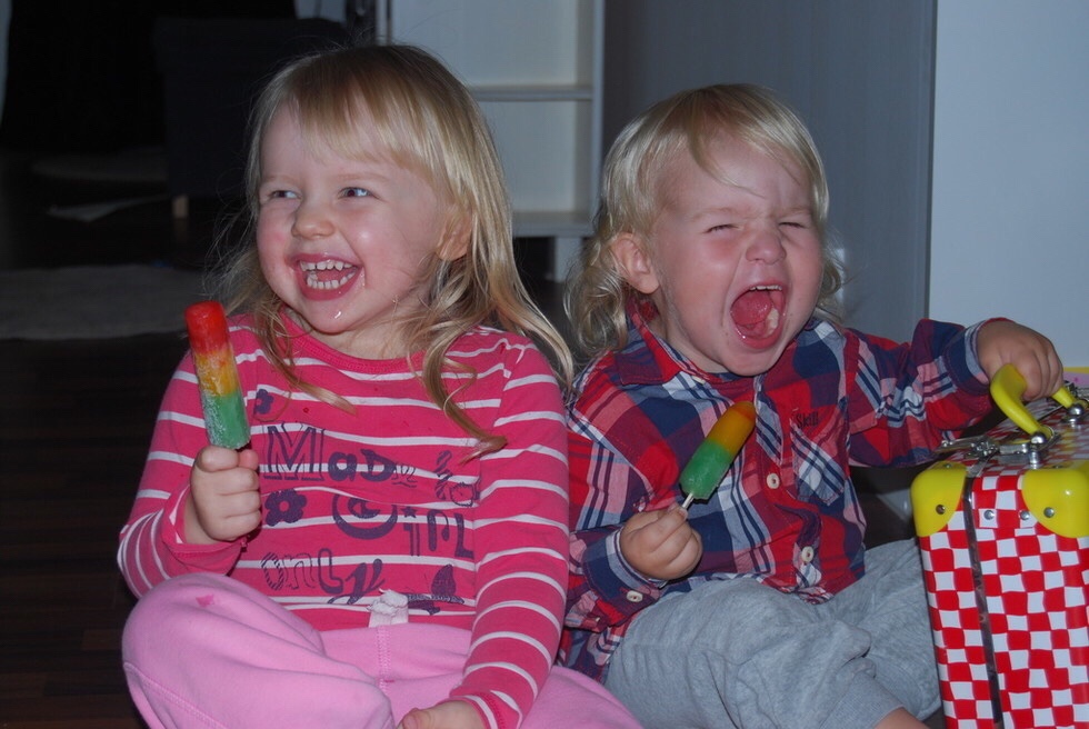 Kolla in dom här busarna då? Här skrattar dom så de håller på att gå av på mitten! Detta var Mejas 2 årskalas. ❤❤❤ Så kul att de följts åt hela livet.