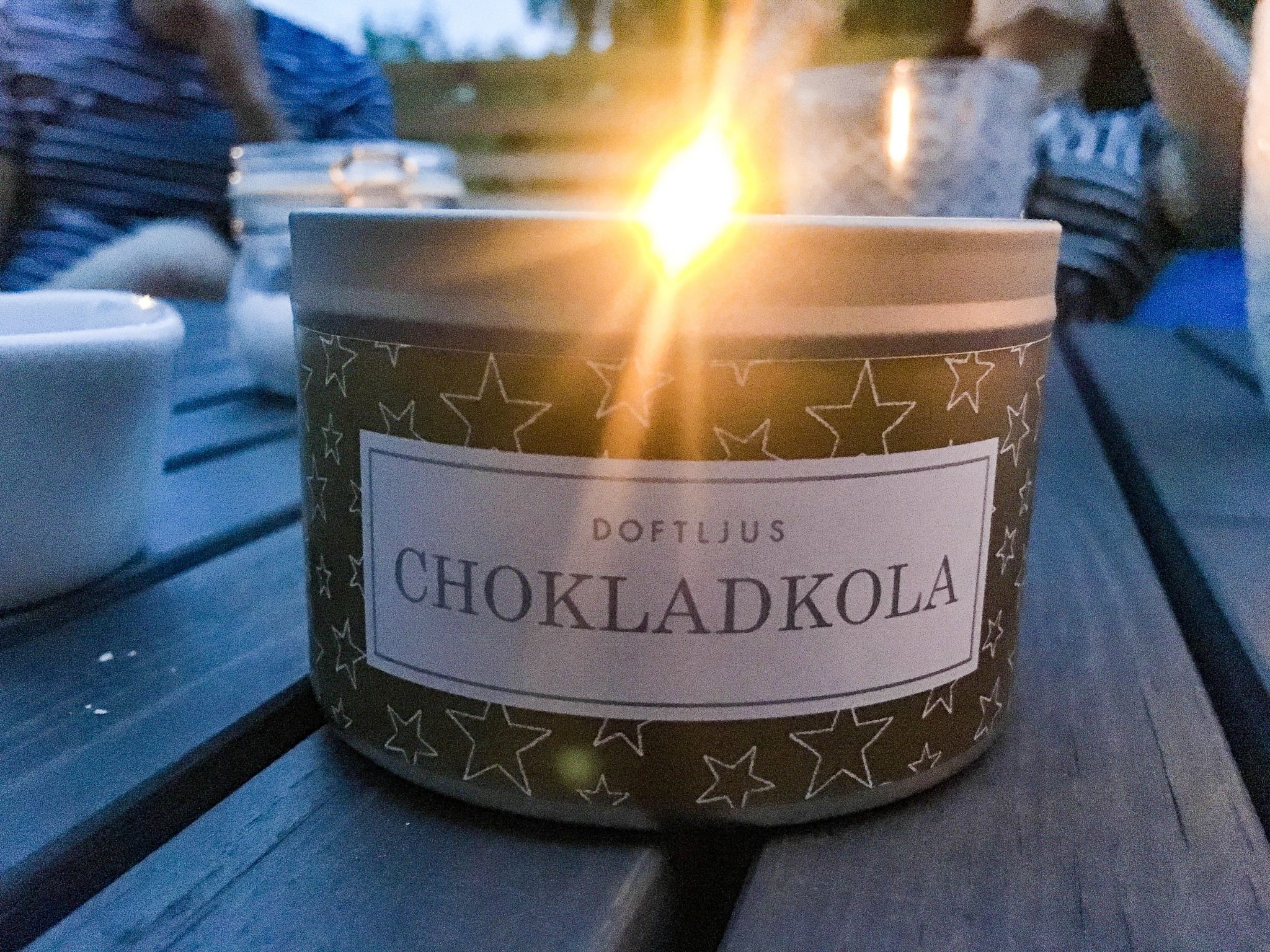 Köpte med mig en liten minipresent med servetter och ett doftljus som doftade chokladkola. Såååå mumsigt! Man ville äta upp ljuset.