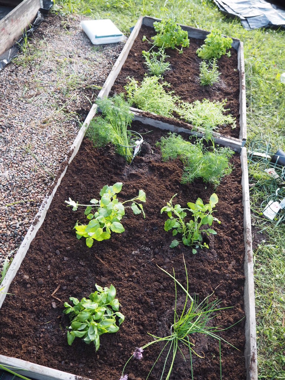 Ja medan vi kört Ernst för hela slanten. Sååå inspirerad av hans program alltså, i Love it! Nu har vi fyllt den med massa kryddor och örter. Lite tomatplantor blev det också och en ska vi fylla med BARA mynta. I lööööööööve mynta! Men det får vi fortsätta med imorgon.