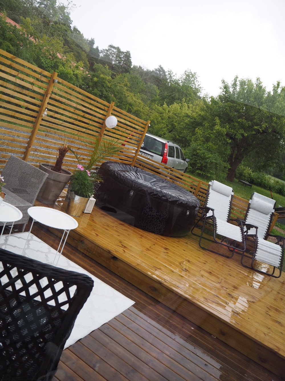 Dock så är det ju svensk sommar vi snackar om här va….så det ööööööste ju ned senare. Vi hann och bubbla lite i bubbelkoppen innan i alla fall…men sen blev det brådis som satan för att få in dynor och komma undan regnet.
