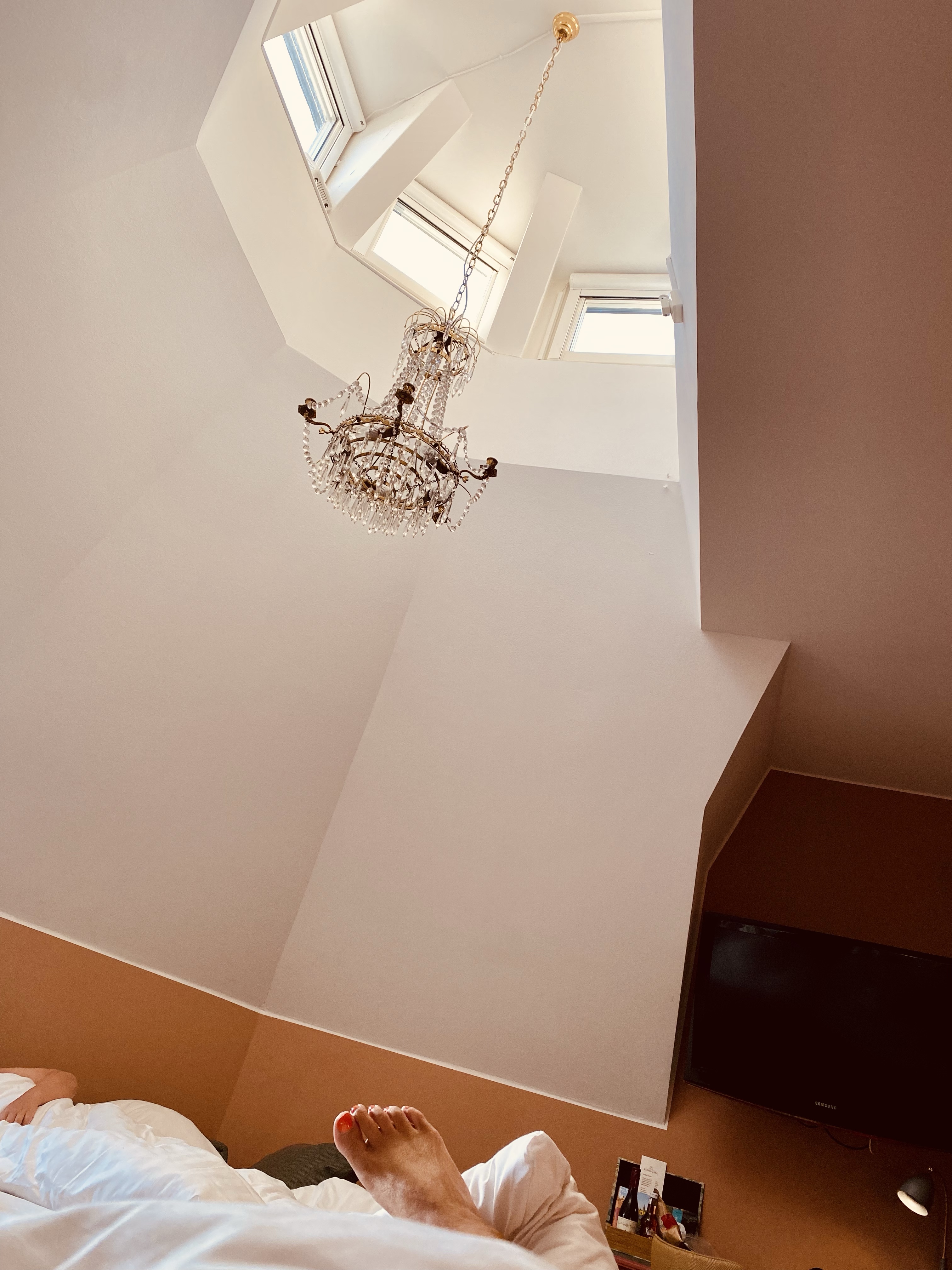 Här låg jag tidigt på morgonen och såg solen strila in kraftigare och kraftigare. Hade en sån lyckokänsla i bröstet där och då, den delade jag också med mig av på instagram.