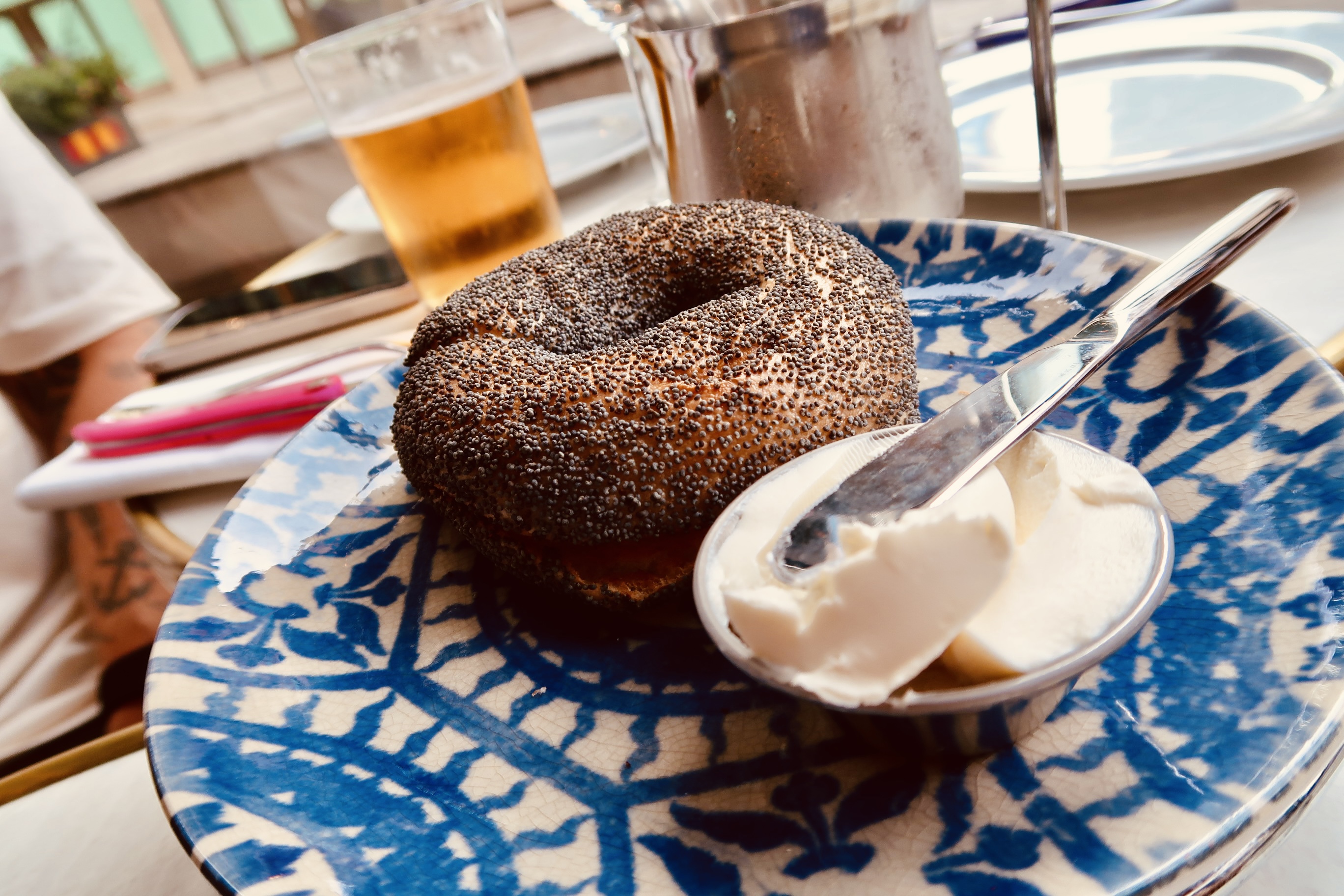 Vi beställde in Burrata, den var bland det godaste jag någonsin ätit. Sååå bra och så god. Tony tog in en rödbetshummus – han satt och mumlade om att det var det godaste han ätit i hela sitt liv. Milo tog en bagel med tonfiskröra som också var supergod. Mätta blev vi även om det inte var planen, svårt att sluta äta när något är sådär gott.