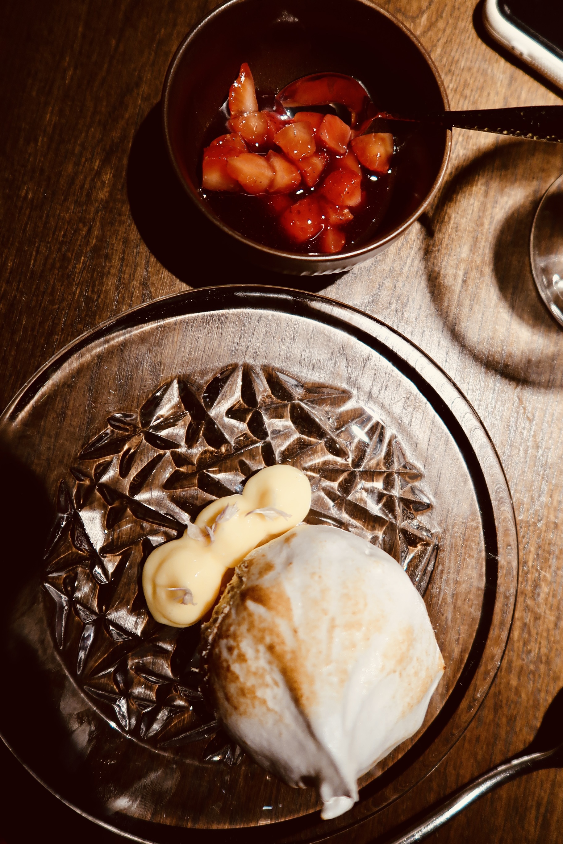 Till efterrätt tog jag Mascarpone- & jordgubbsmousse, italiensk maräng, citroncurd & varma färska jordgubbar. Hallegoooo alltså, så gaaaaalet gott! Milo tog en jordgubbs & citron lollipop – den var poppis och Tony tog en tartlett med vispad vaniljkräm och smultron, också sååå god!