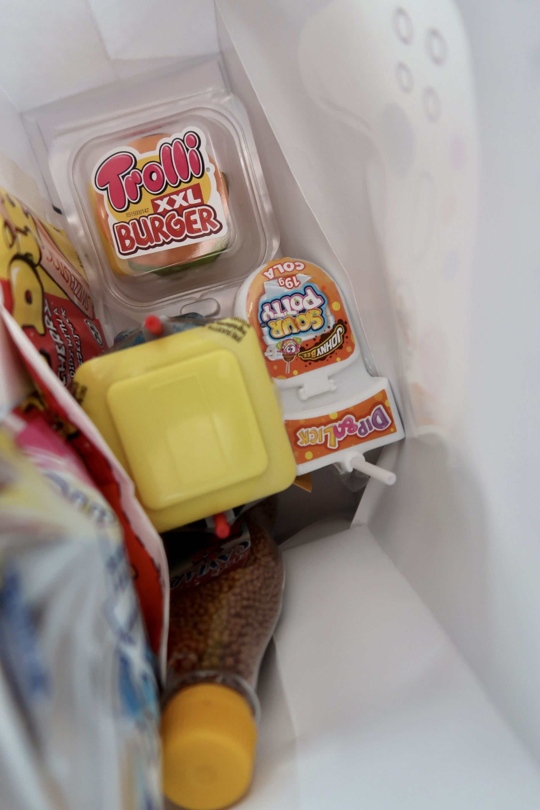 Fyllde den sedan med allt möjligt som vi vet att han gillar. Roliga godisar, hamburger och strips strumpor (köpte på Åhlens), tuggummi, powerade, salami chips och så fick han en hundring i swish också. Han blev så himla glad, är dock rädd att detta med fredagspåsar kommer få fortsätta. Haha, det var väldigt uppskattat och en bra ”muta” om man vill att de ska kämpa lite extra mycket i skolan.