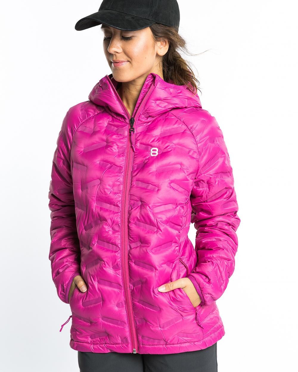 Dunjacka med endast återvunnet dun från matindustrin. Hur coolt med rosa? Jag velade länge men sen kände jag att rosa kommer bli sååå rätt för mig. Då syns jag också när jag klotar i backen! Hoppas bara storleken blir bra.