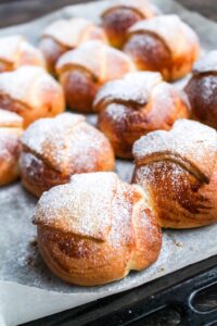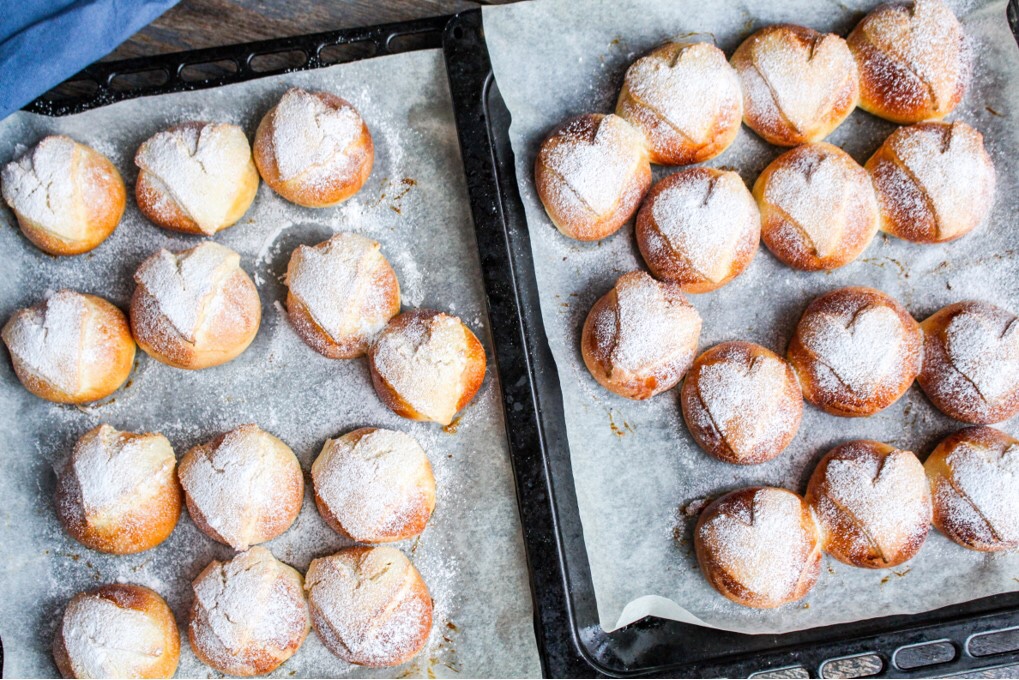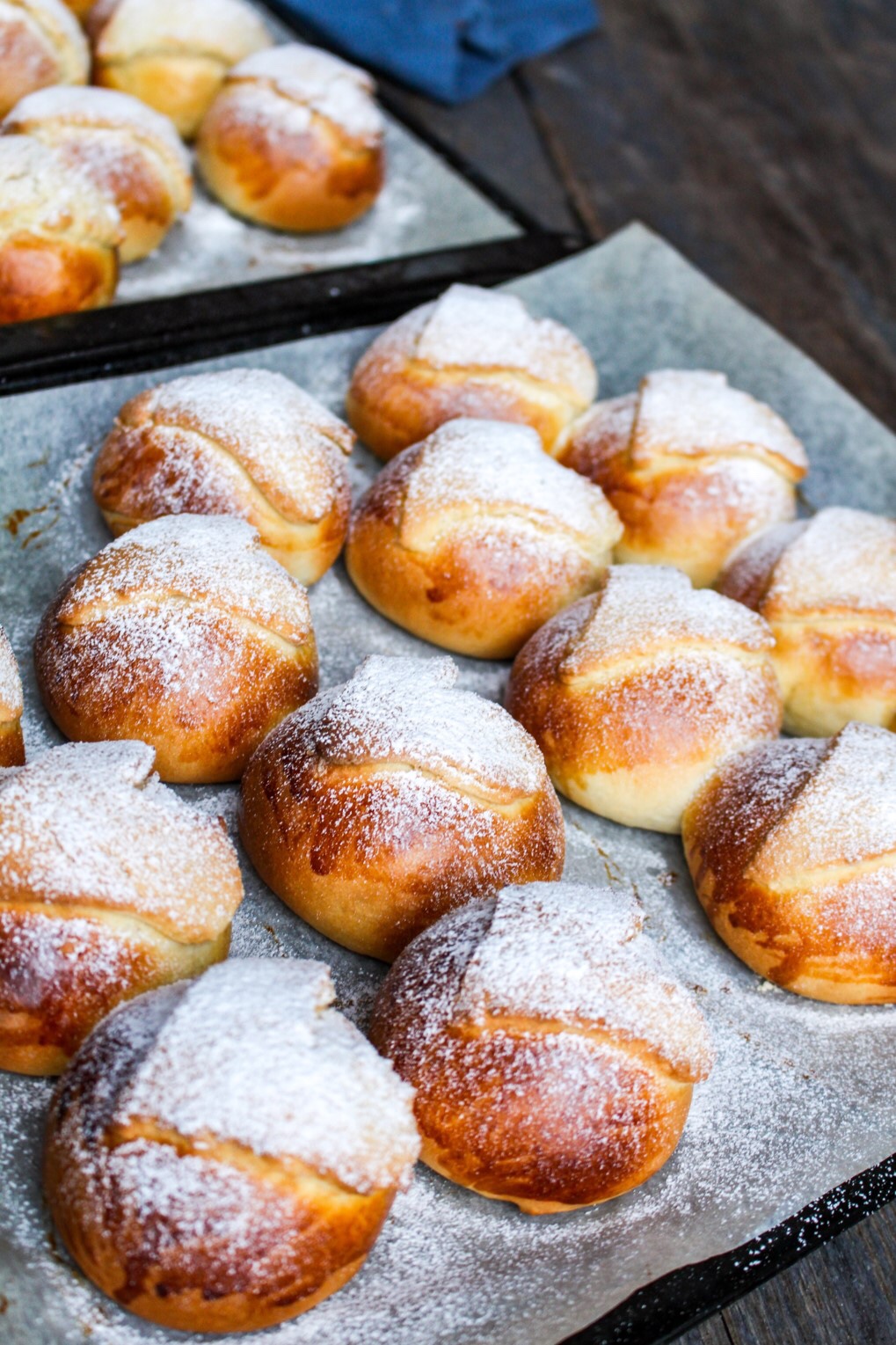 Nu ska du få recept på finska julbullar som inte bara är goda, dom är fina att se på också! Vanlig bulldeg i botten, sedan toppar man med mördegskakor uppepå.