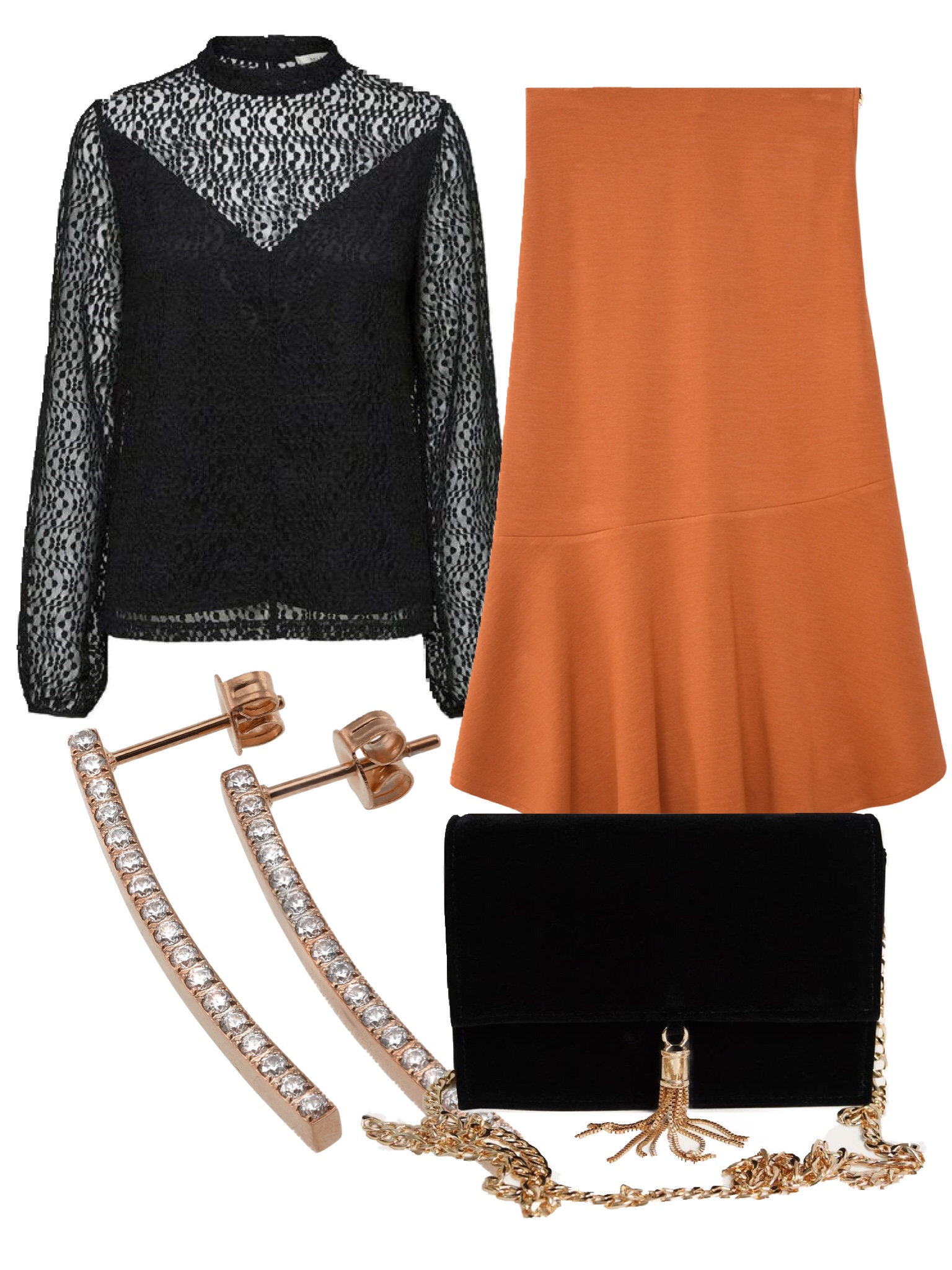 Kjol // Topp // Örhängen // Väska