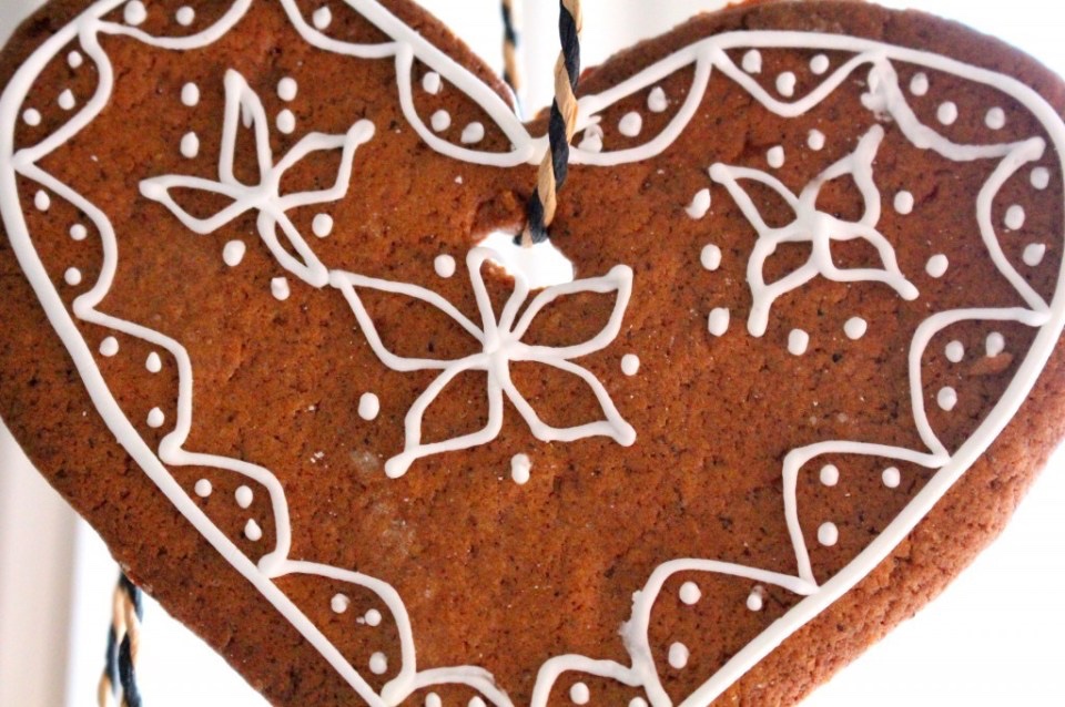 Baka stora pepparkakor och gör hål i. Trä igenom snöre och dekorera fönstrena med hängande fina pepparkakor. HÄR hittar du tips på hur du kan dekorera dem. HÄR hittar du perfekta receptet på proparkaksdeg.