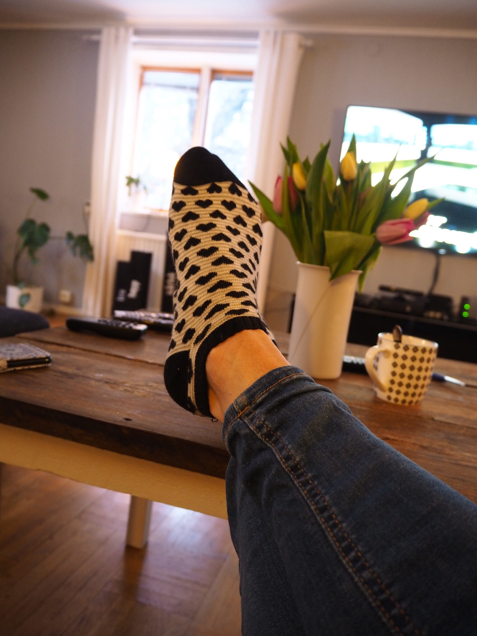 Fötterna på bordet när man är hemma hos folk. Ibland tänker jag mig inte för. Vi satt och tjitt-tjatta om allt och så upptäcker jag att jag sitter med fötterna på bordet. Trevlig gäst! Haha!