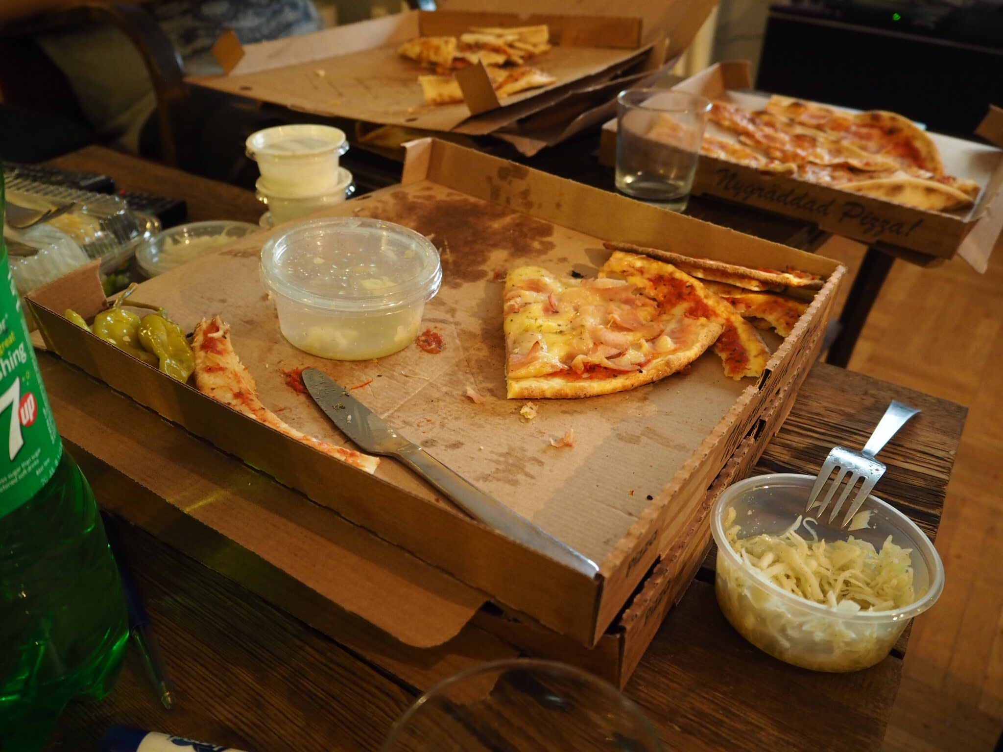 Vi blev kvar hela kvällen och käkade pizza. Hämtade pizza på SG i Fjärdhundra. Bästa glutenfria pizzorna i vårt område. Åker du förbi nångång så gå in och ät där. Finns på vägen hem från Sälen 2 mil innan Enköping kan jag ju tipsa om.