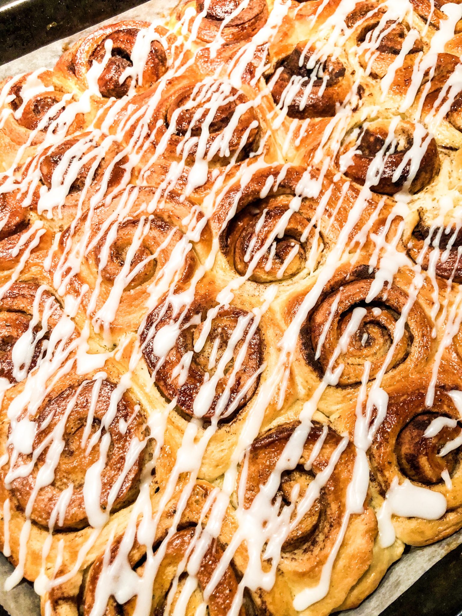 Igår kväll bakade jag bl a bullar i långpanna. Finns väl inget som kan få en att bli så lycklig som lite kanelbullar?